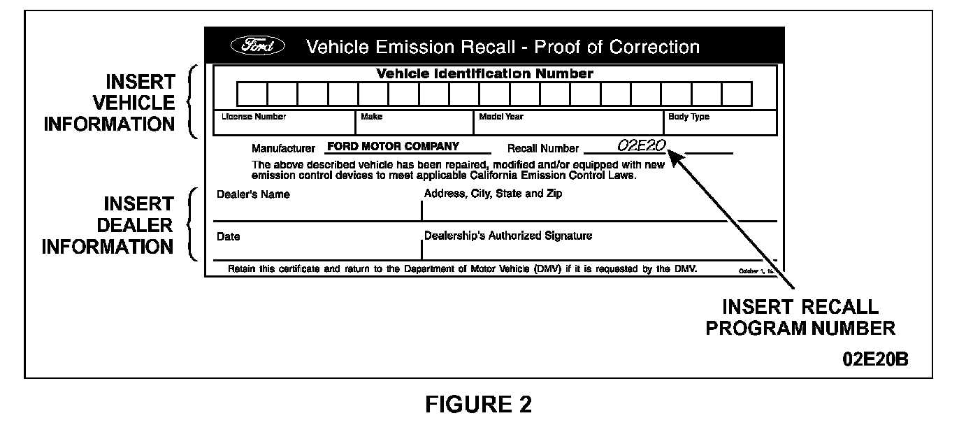 4. Provide California owners with a completed Vehicle Emissions Recall-Proof of Correction certificate. See Figure 2.