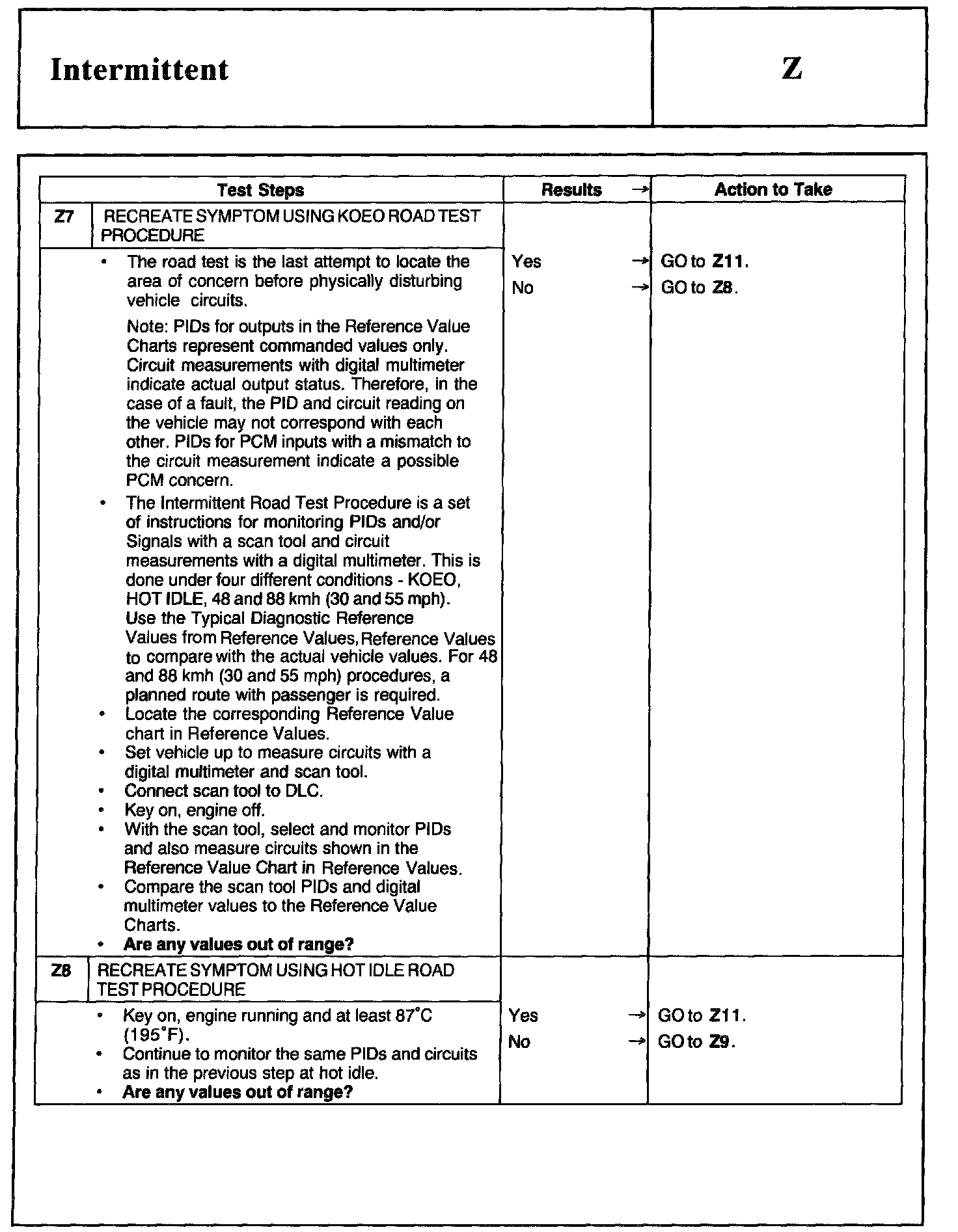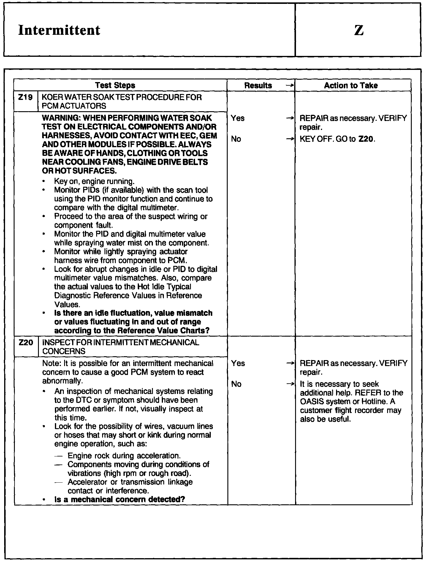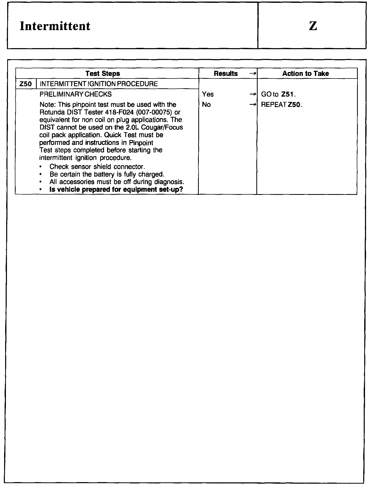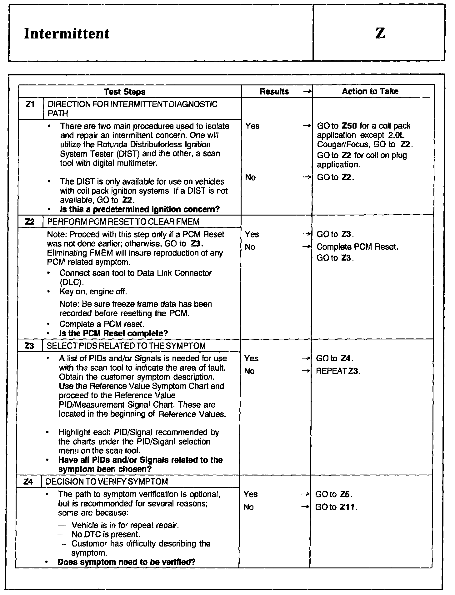Home >> Ford >> 2002 >> Excursion 2WD V10-6.8L >> Repair and Diagnosis >> Powertrain Management >> Computers and Control Systems >> Testing and Inspection >> Pinpoint Tests >> Test Z: Intermittent