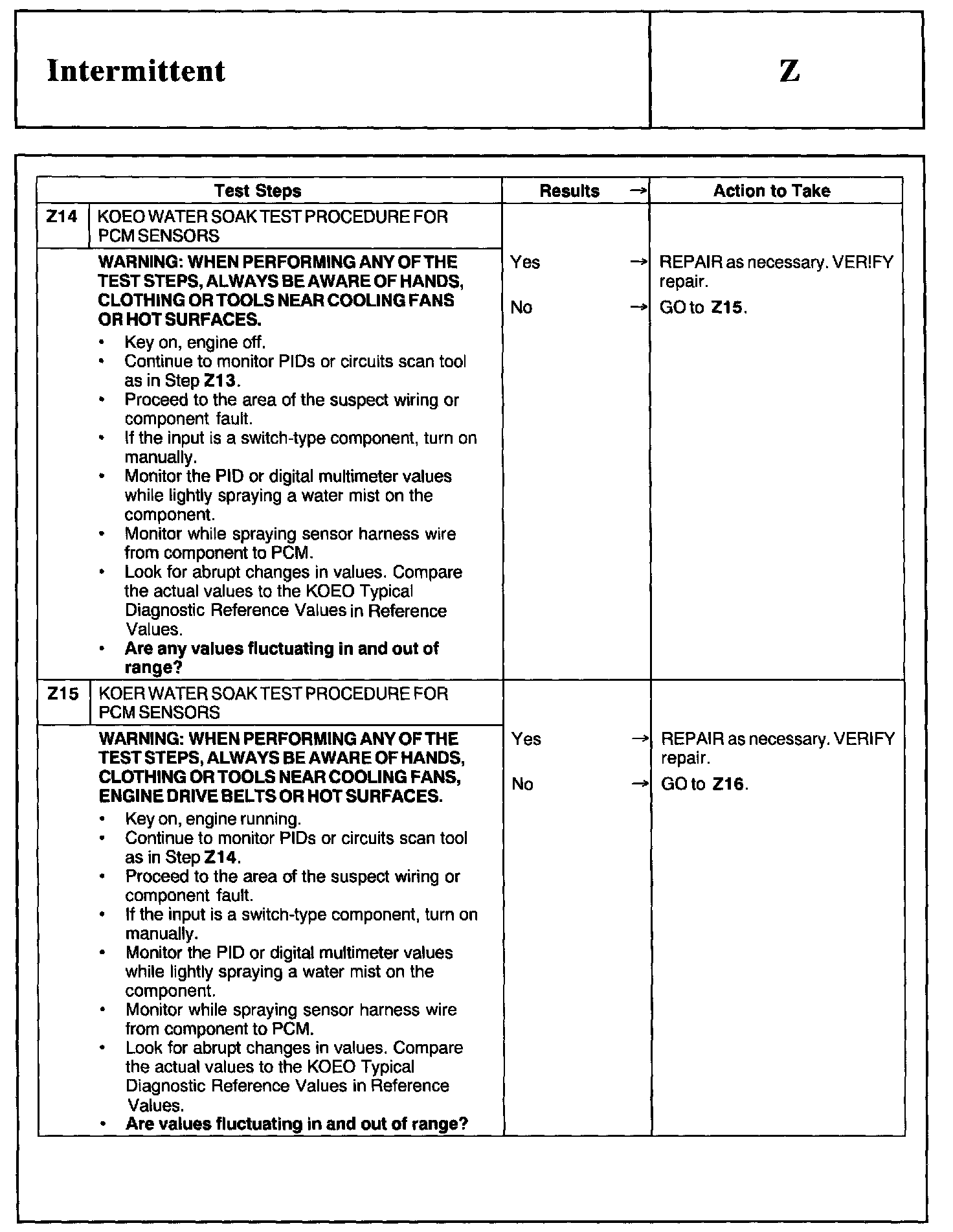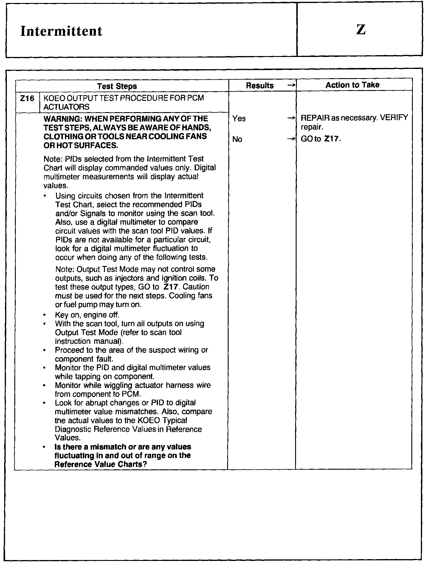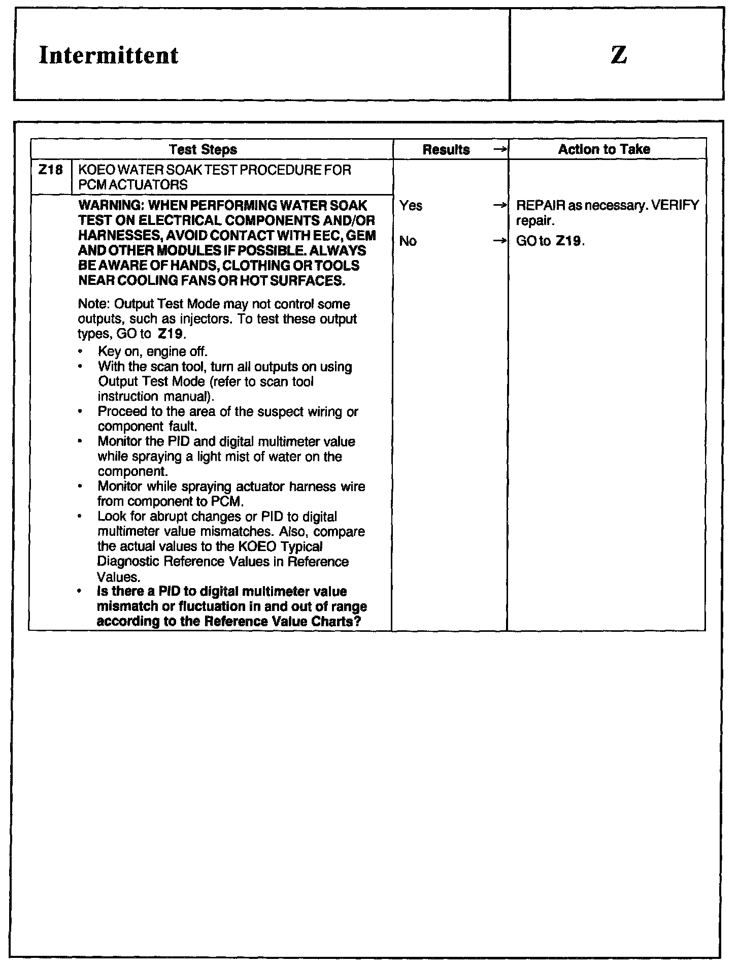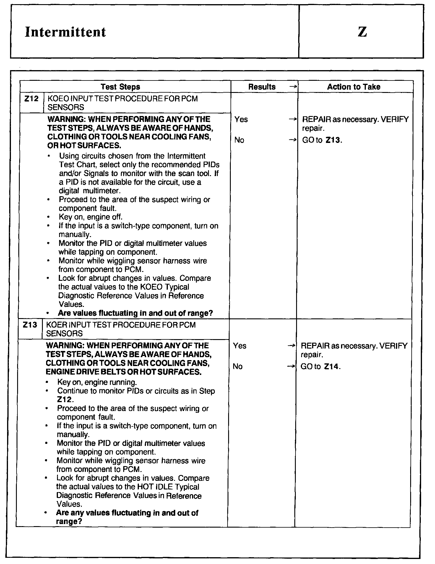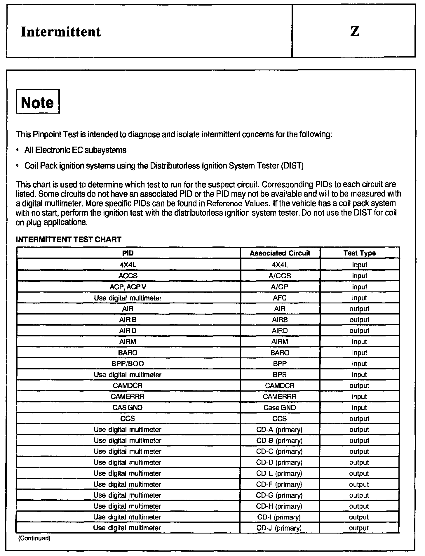 Home >> Ford >> 2002 >> Excursion 2WD V10-6.8L >> Repair and Diagnosis >> Powertrain Management >> Computers and Control Systems >> Testing and Inspection >> Pinpoint Tests >> Test Z: Intermittent