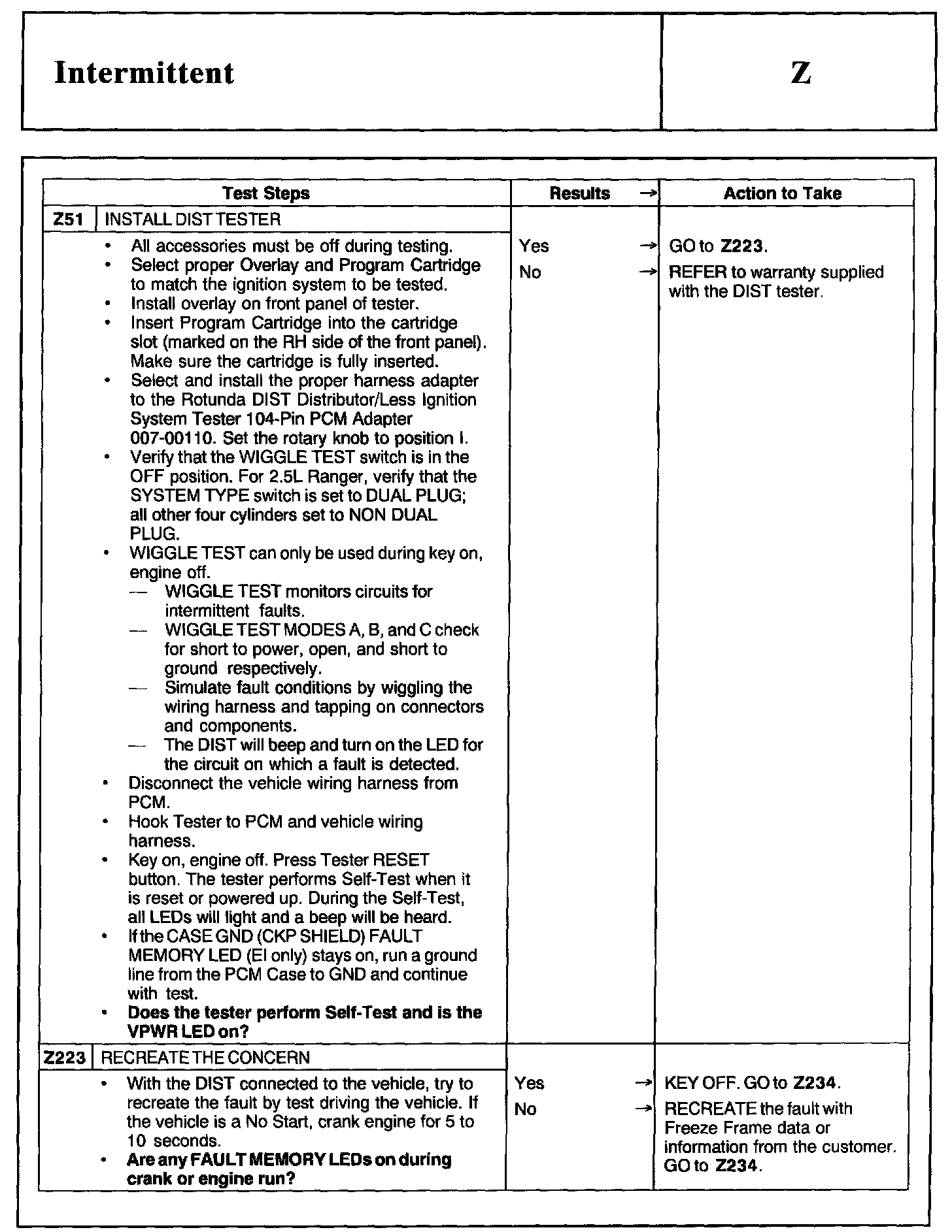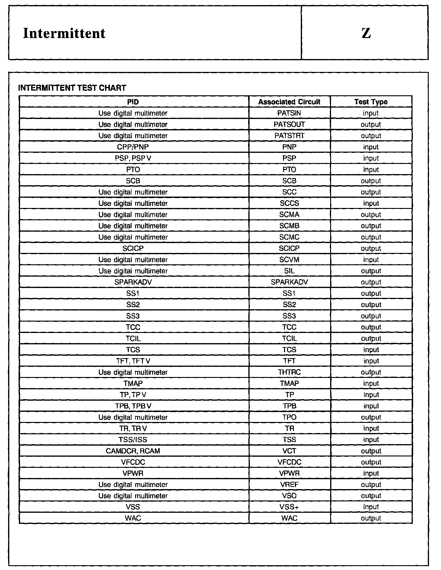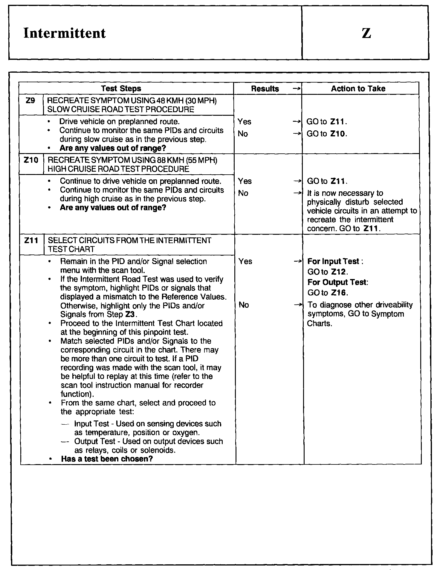 Test Z: Intermittent