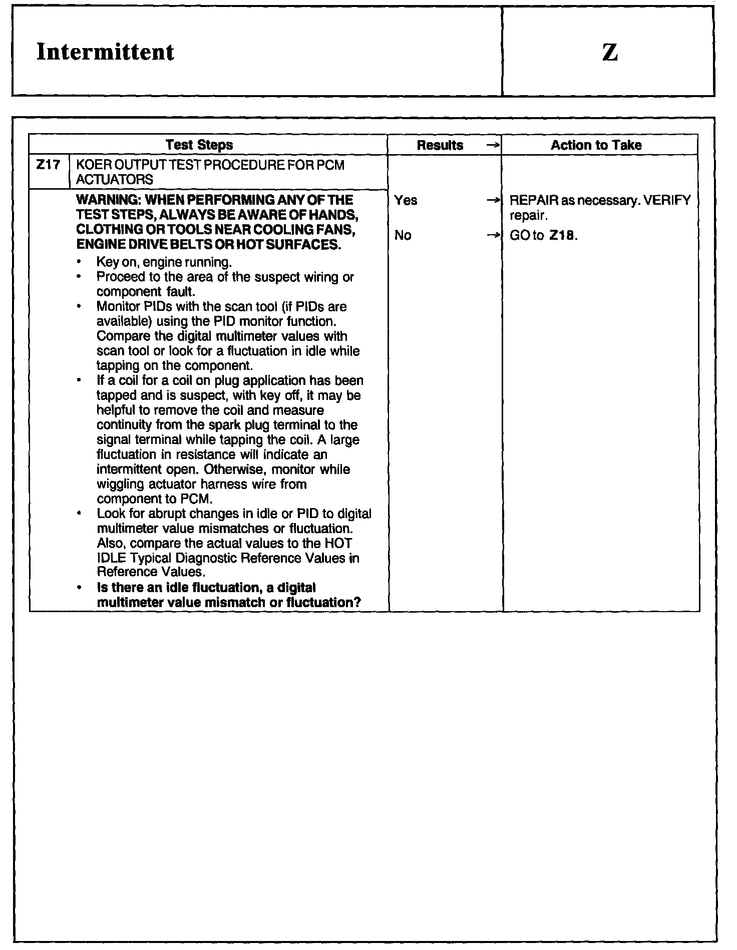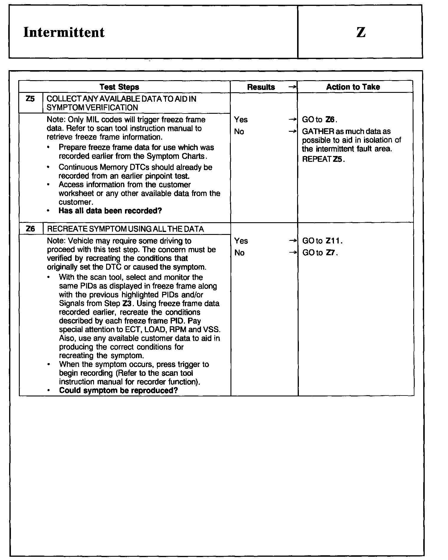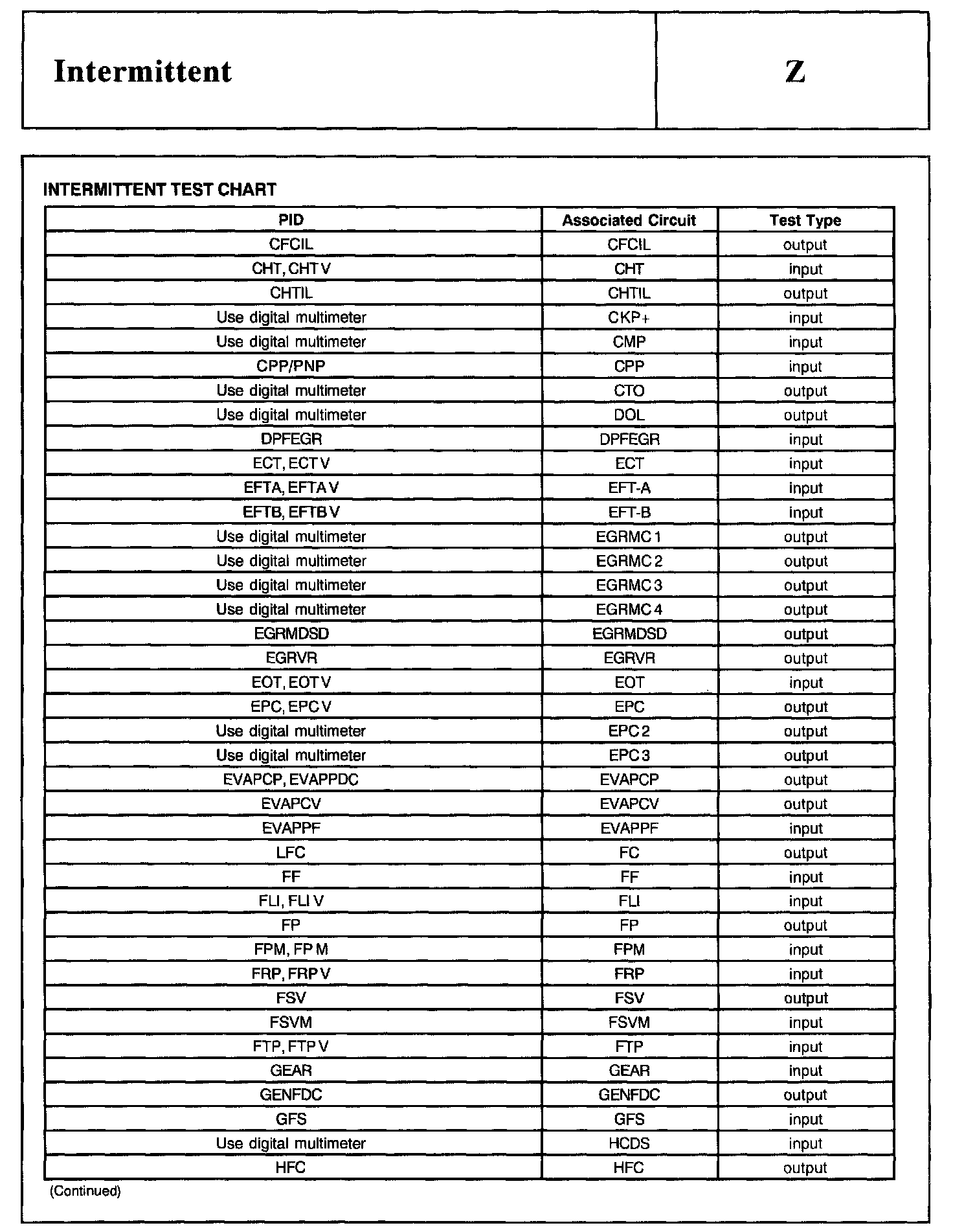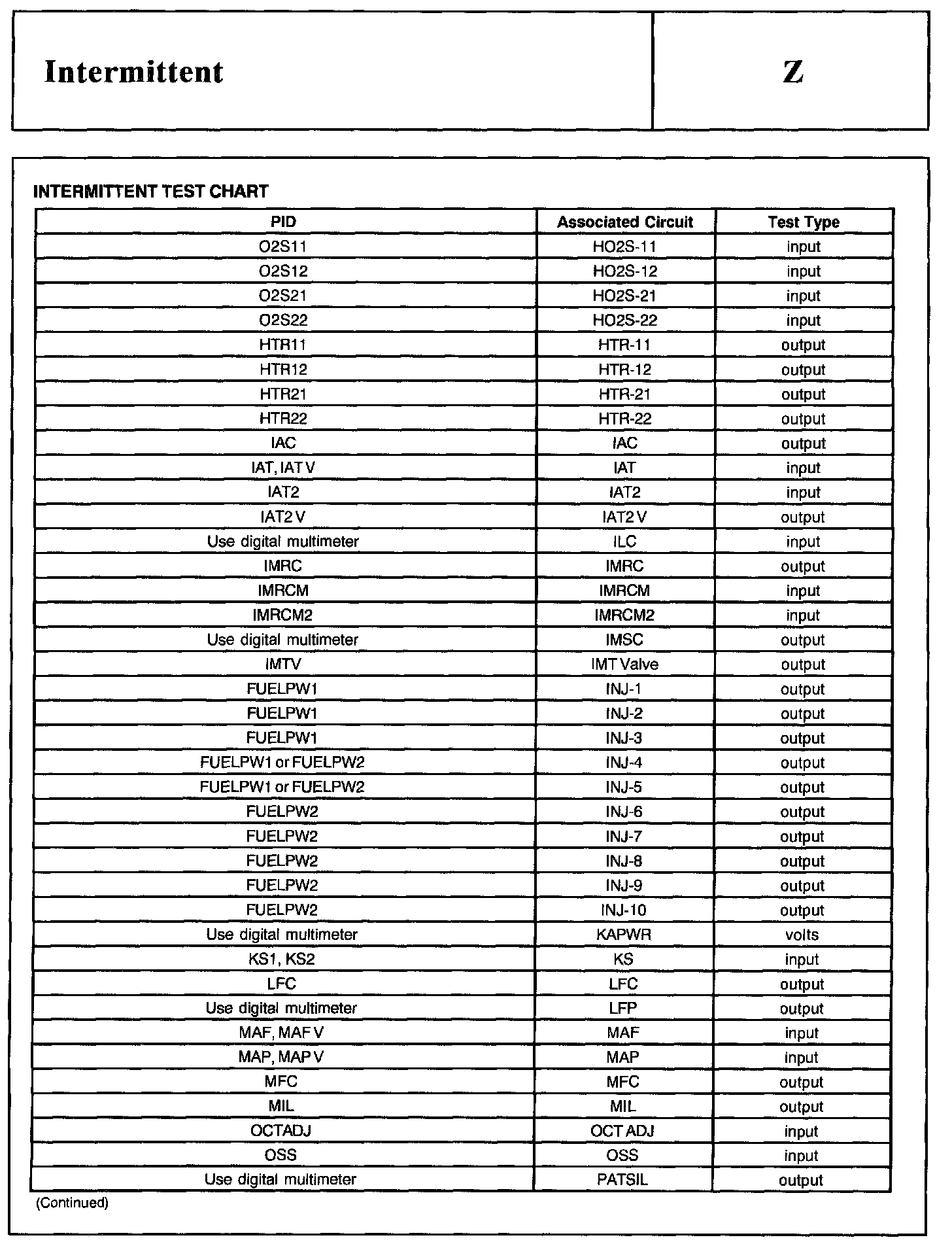 Test Z: Intermittent