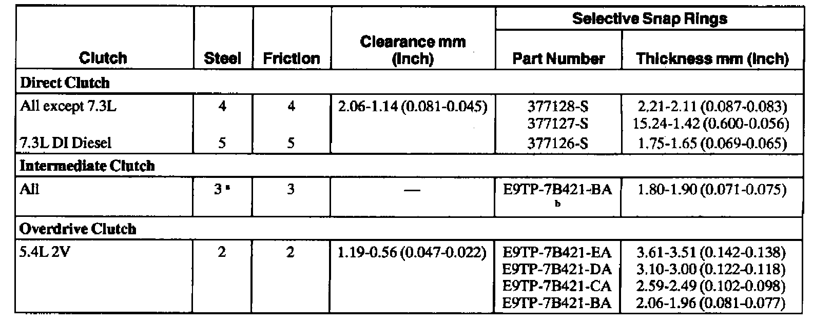 Clutch Plate Usage and Clearance Specifications