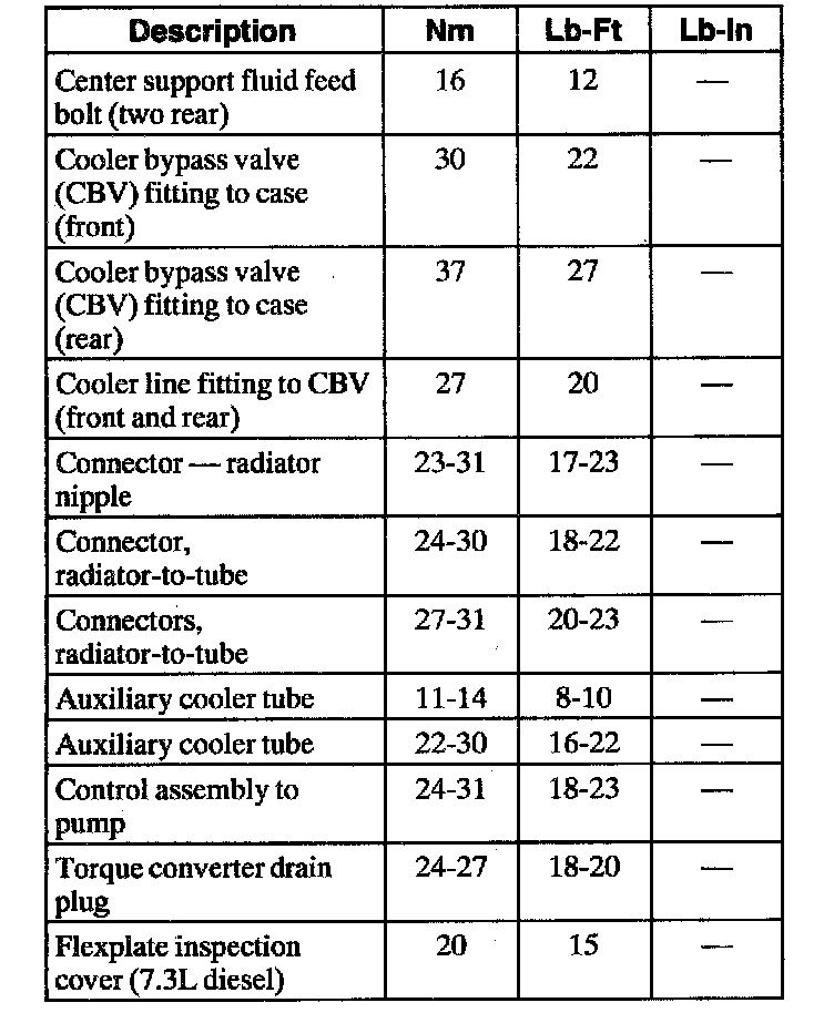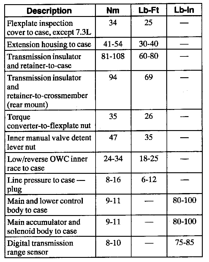 Torque Specifications