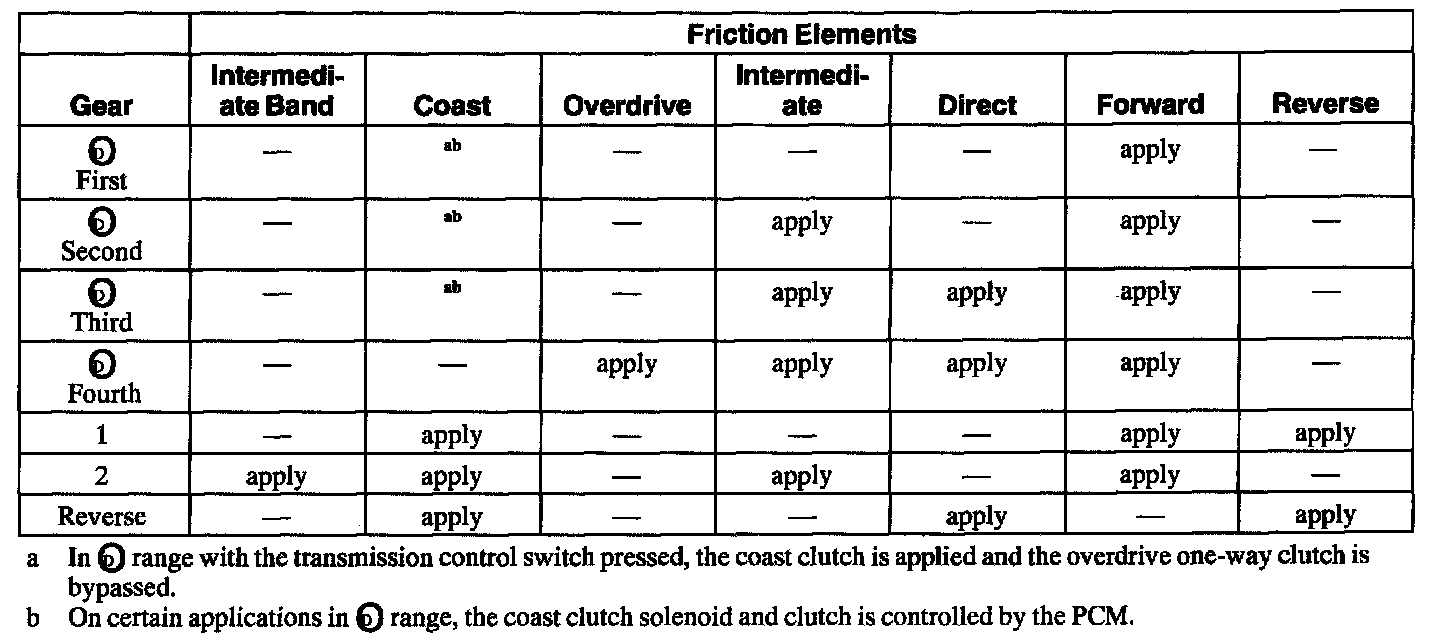 Band/Clutch Application Chart