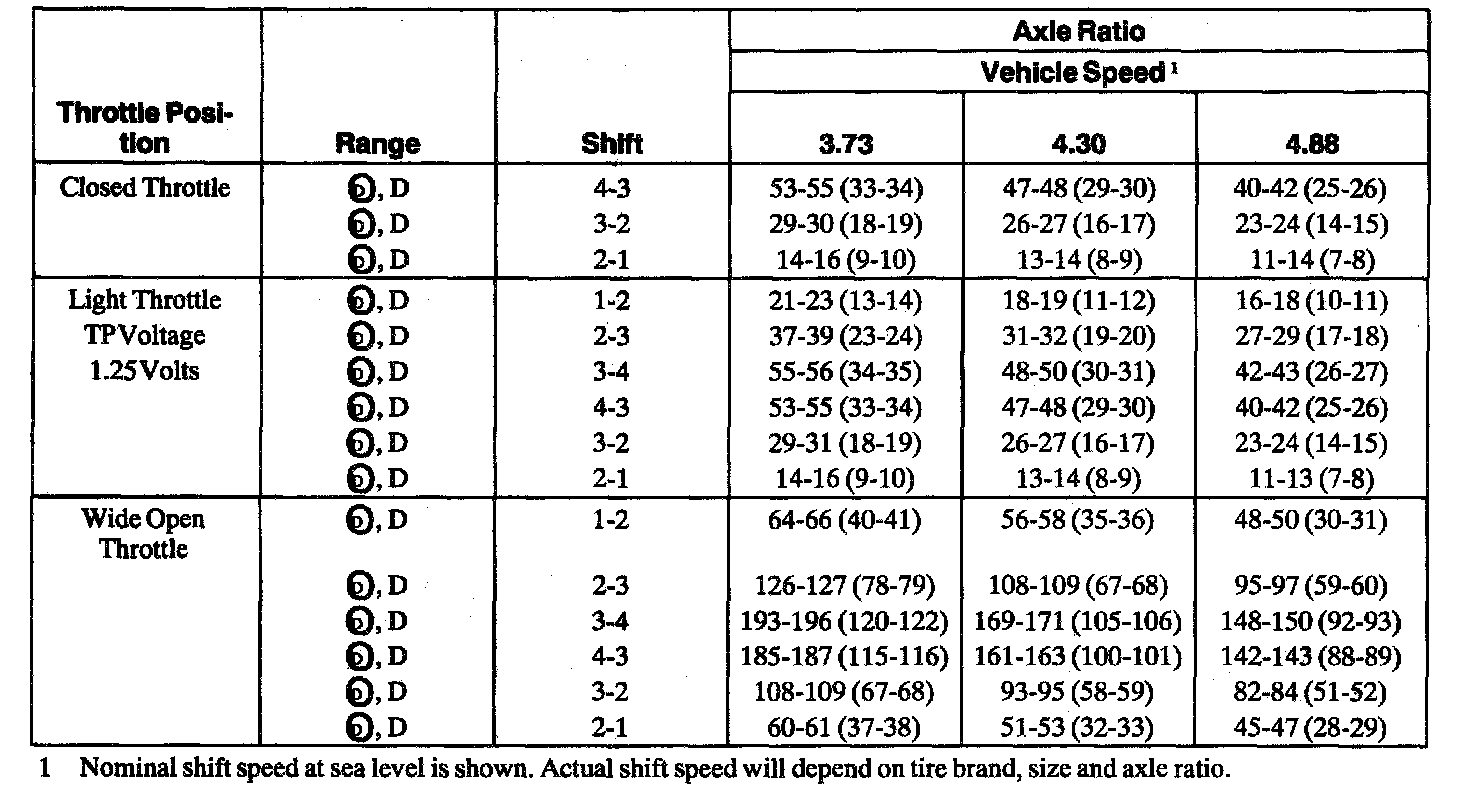 Application a Shift Speeds-Approximate* Km/h (MPH) (F-250, F-350, F-450 Excursion, Series Super Duty with 6.8L)