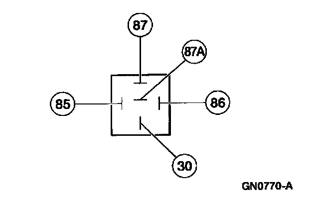 Use the 73III Automotive Meter to check for continuity between terminal 85 and all other terminals. If resistance is 5 ohms or less between terminal 85 and any other terminal, install a new relay. If resistance is greater than 5 ohms, continue with the test. Use two jumper wires to connect relay terminals 86 and 30 directly to the positive battery terminal. Use the 73 Digital Multimeter set in the volts position to check for voltage at terminal 87A. If battery voltage is not indicated, install a new relay. If battery voltage is indicated, connect a third jumper wire to terminal 85 and ground the jumper wire to a know good ground. Check for voltage at terminal 87. If battery voltage is not indicated, install a new relay.