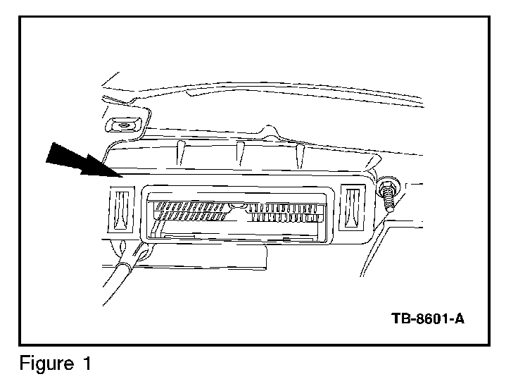 Disconnect the PCM connector. Remove the PCM cover from the studs in the bulkhead. (Figure 1)