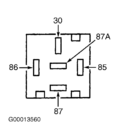 - Using jumper wires, apply battery voltage to relay terminal No. 86 and ground relay terminal No. 85. Continuity should now exist between terminals No. 30 and 87. If continuity is not as specified, replace relay.