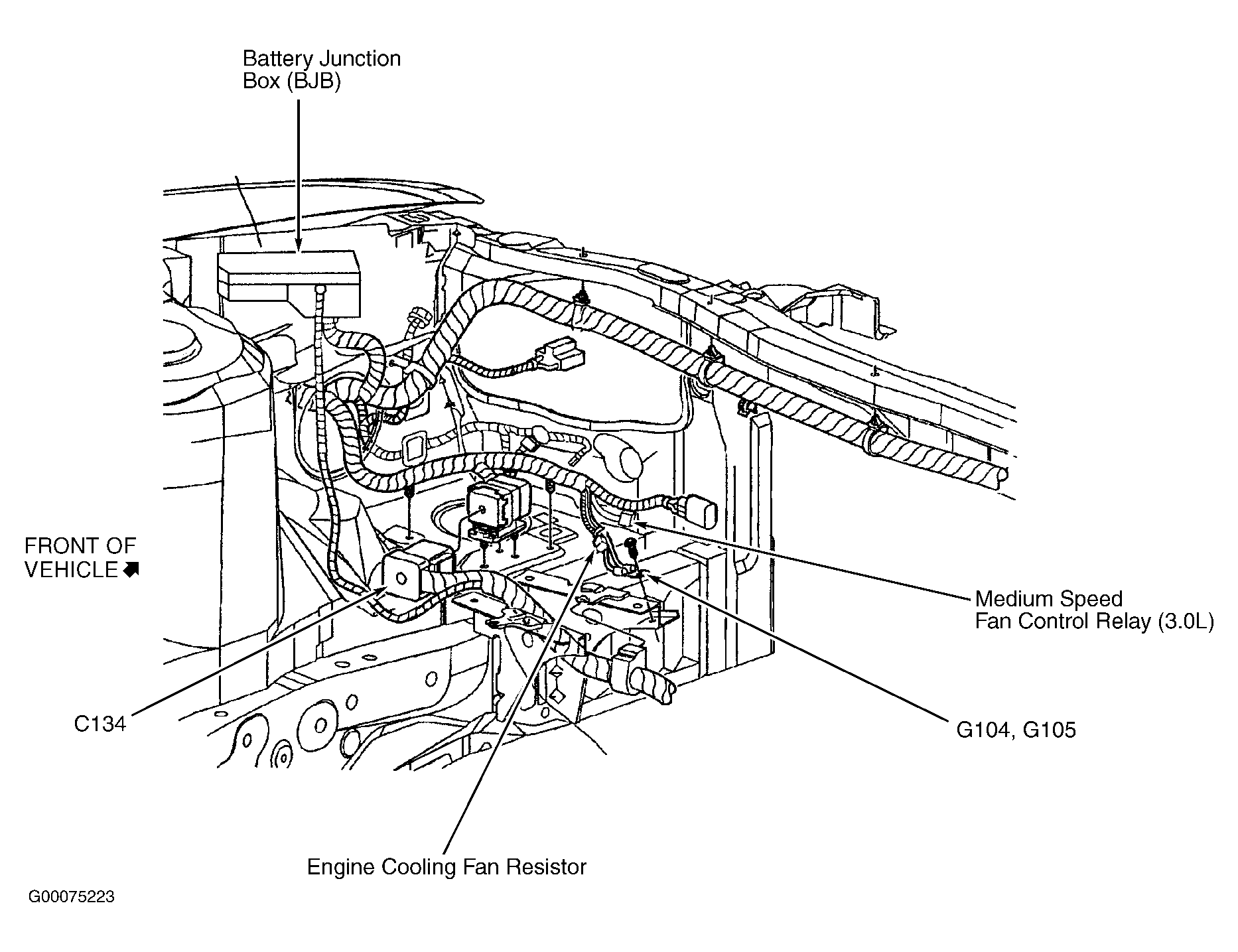 Battery Junction Box (BJB) On left front corner of engine compartment. See Figure .