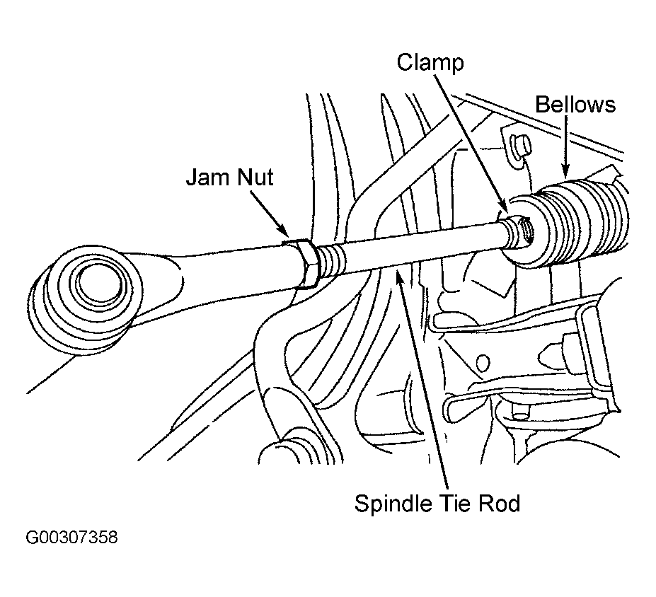 2. NOTE: Do not allow the steering gear bellows to twist when the front wheel spindle tie rod is rotated.