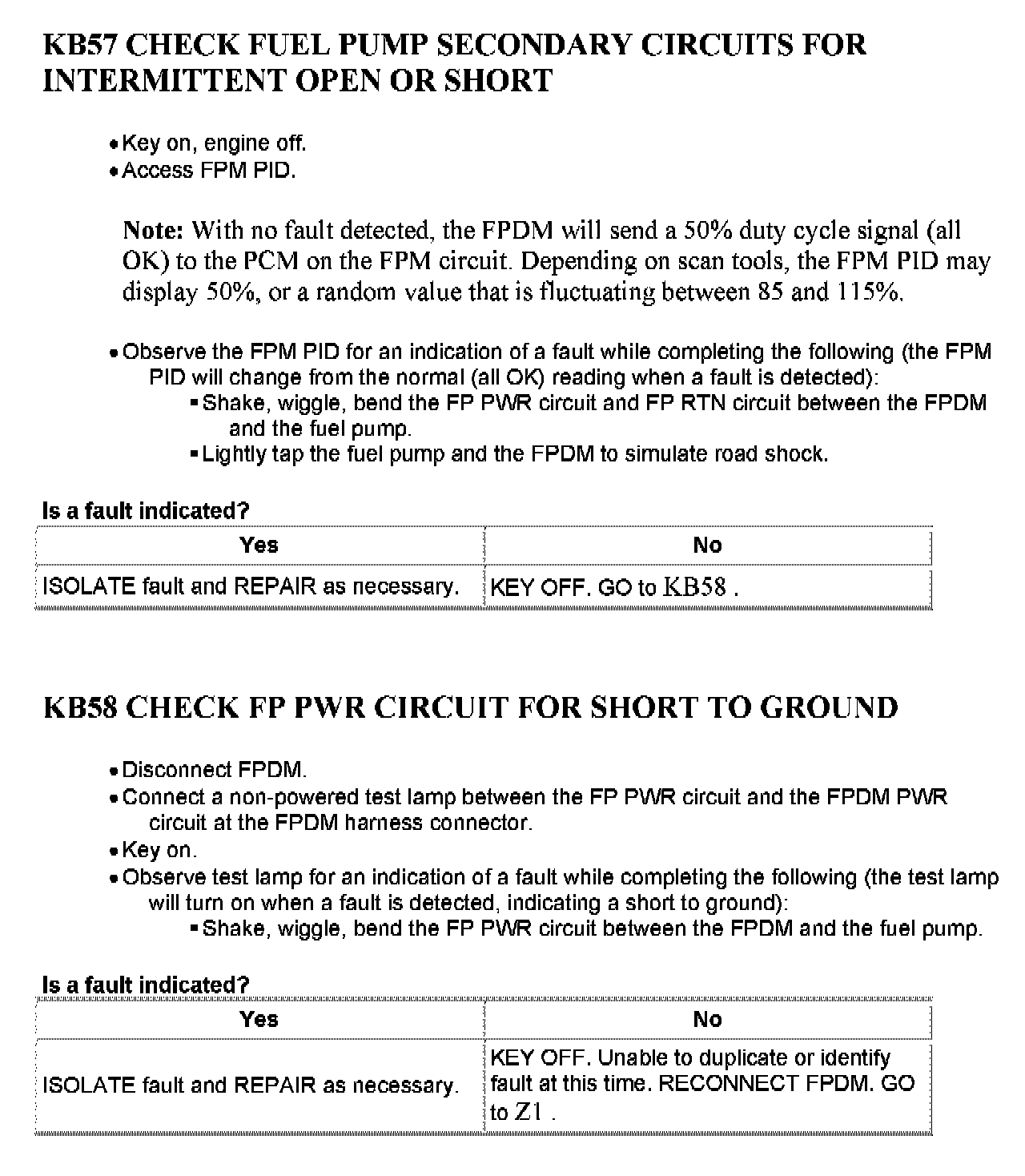 Tests KB: Fuel Pump Driver Module (FPDM)