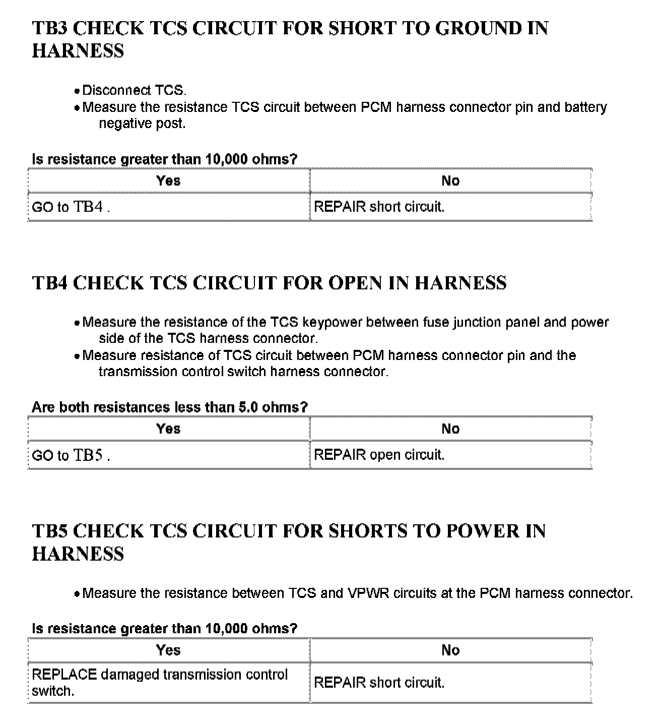 Tests TB: Trans Control Switch/Trans Control Indicator Lamp