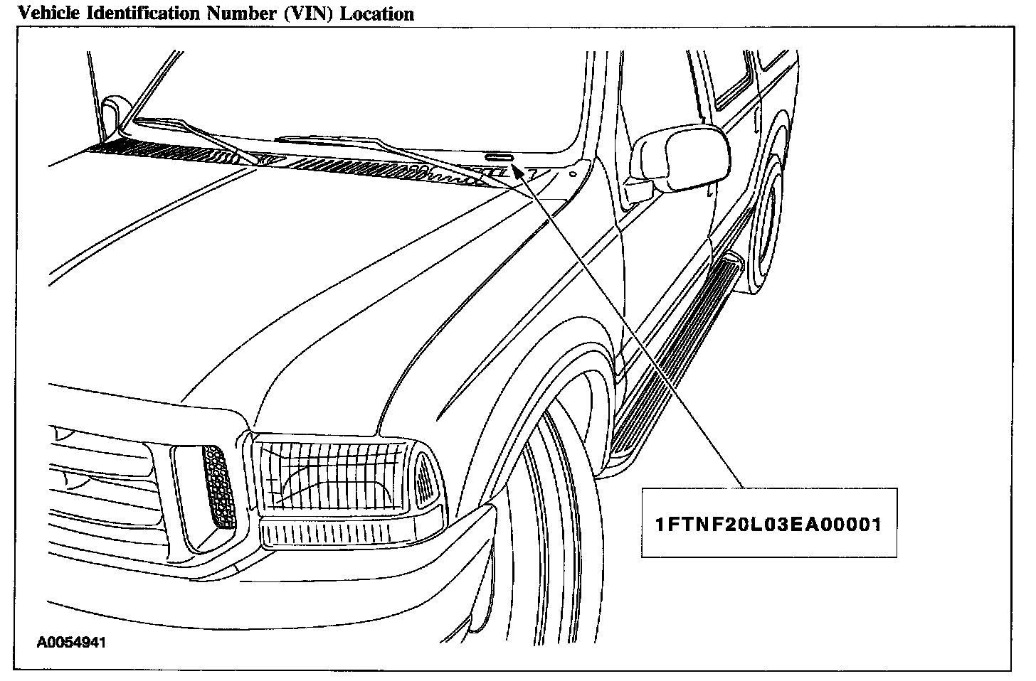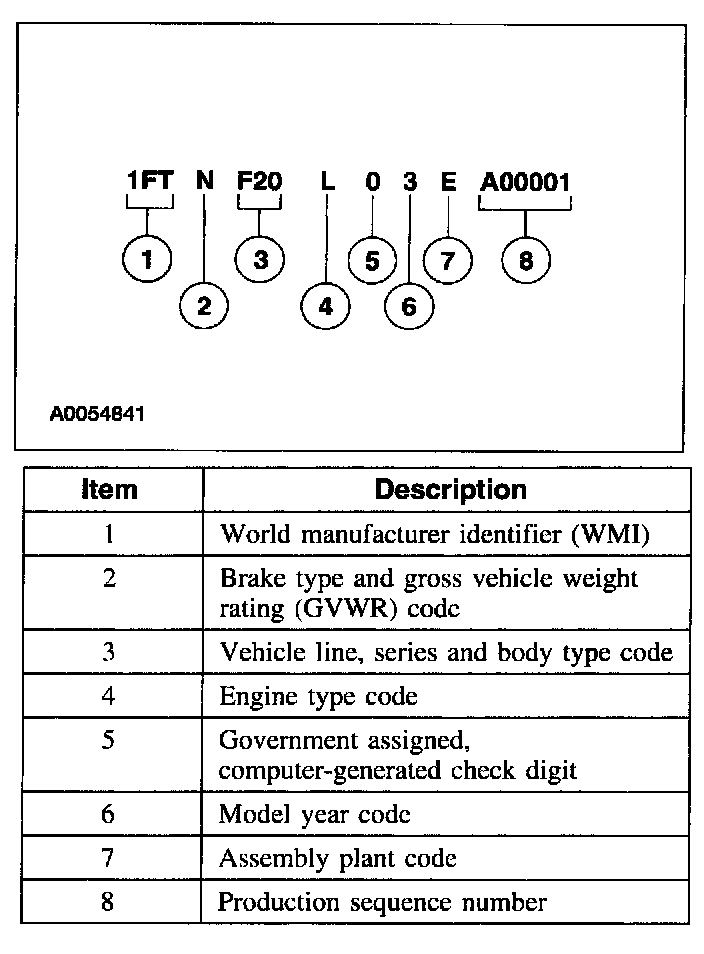 The vehicle identification number (VIN) is a 17-digit combination of letters and numbers. The VIN is stamped on a metal tab riveted to the instrument panel, top upper left of the dash. The VIN number is also found on the vehicle certification (VC) label.