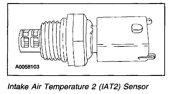 The IAT2 sensor is located in the intake manifold. The sensor provides a manifold air temperature signal to the powertrain control module (PCM).