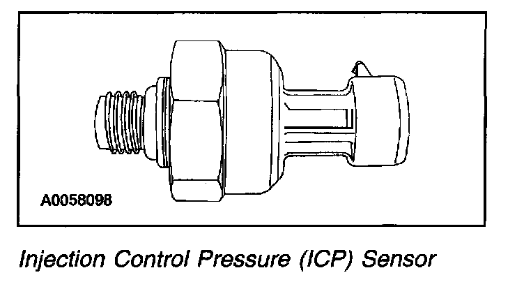 The Injection Control Pressure (ICP) sensor is a variable capacitor sensor that is supplied a 5-volt reference signal by the PCM and returns a linear analog voltage signal that indicates pressure. The sensor measures the oil pressure in the high pressure pump cover, and the PCM uses this information to determine injection control pressure. The ICP sensor along with the Injection Control Pressure Regulator form a closed loop fuel pressure control system.