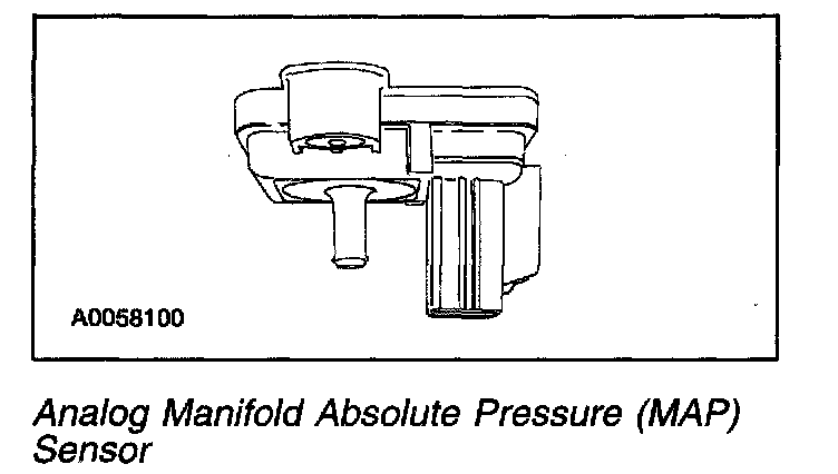 The analog Manifold Absolute Pressure (MAP) sensor is a variable capacitor sensor that is supplied a 5-volt reference signal by the PCM and returns a voltage signal to the PCM relative to intake manifold pressure. The sensor voltage increases as pressure increases. The MAP sensor allows the PCM to determine engine load to calculate fuel quantity. In addition, the MAP signal is used to control smoke by limiting fuel quantity during acceleration until a specified boost pressure is obtained and is utilized by the PCM for EGR system calculations and control.