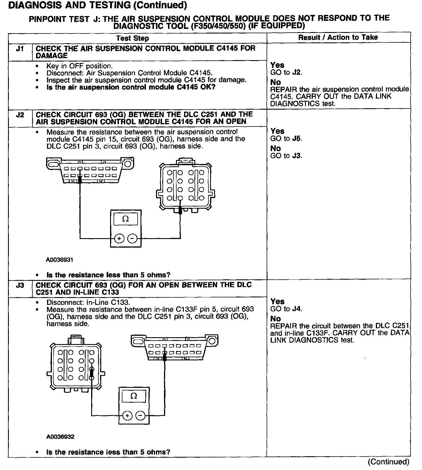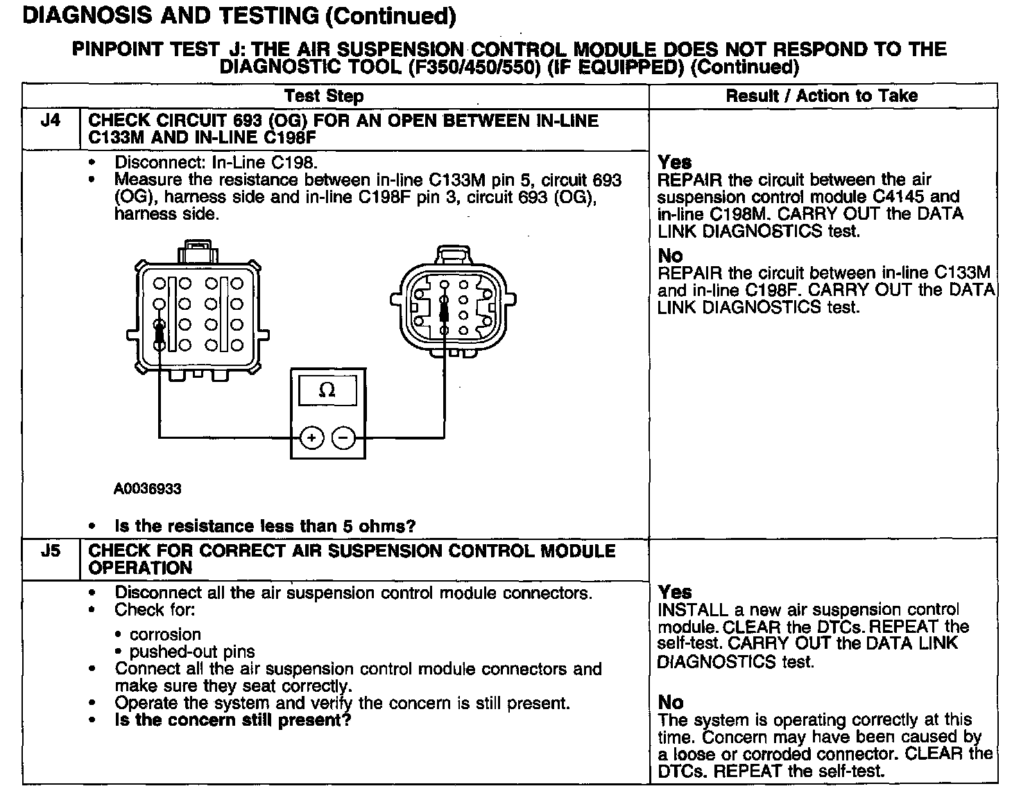 PINPOINT TEST J: THE AIR SUSPENSION CONTROL MODULE DOES NOT RESPOND TO THE DIAGNOSTIC TOOL (F350/450/550) (IF EQUIPPED)