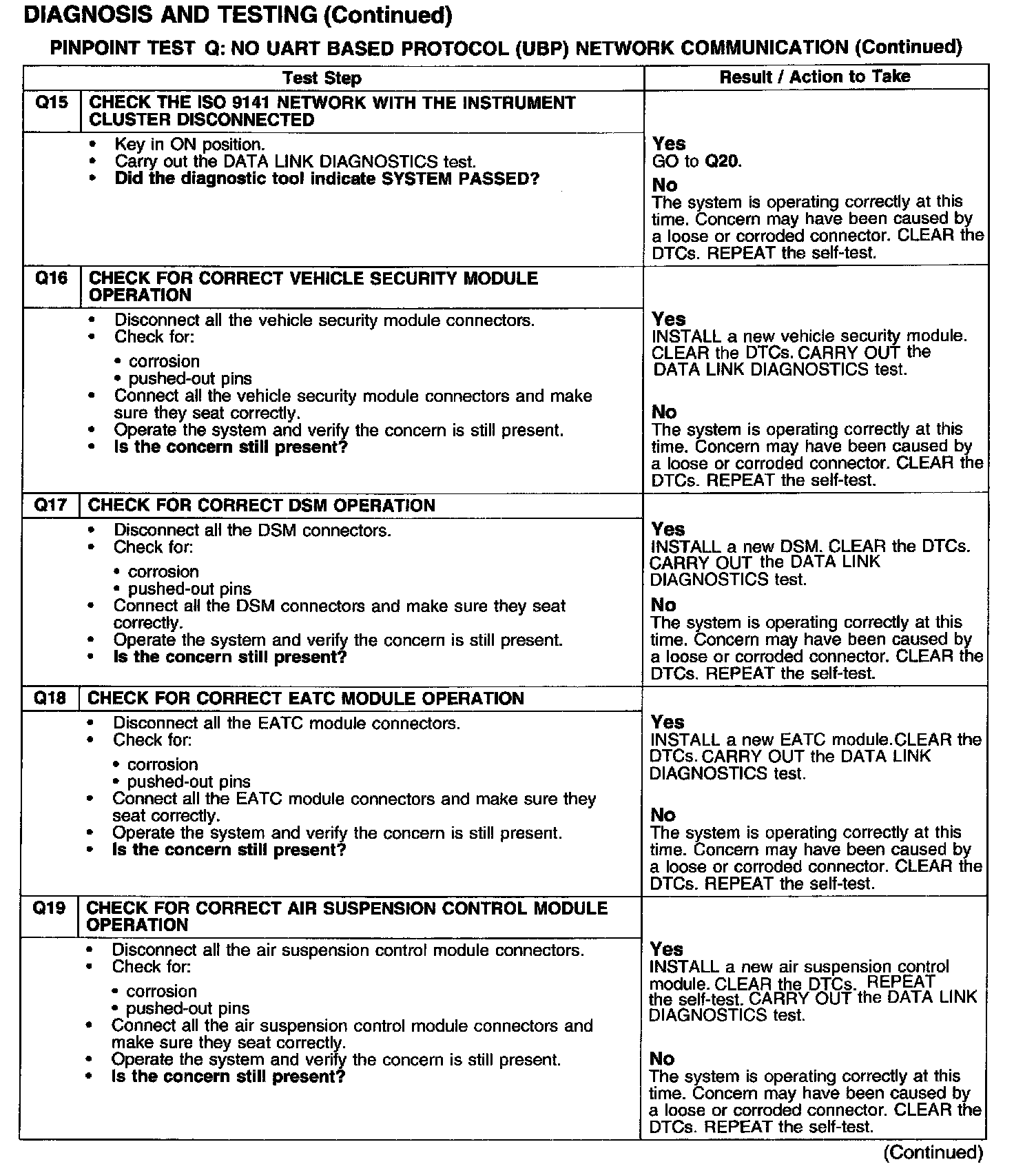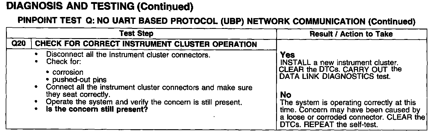 PINPOINT TEST Q: NO UART BASED PROTOCOL (UBP) NETWORK COMMUNICATION