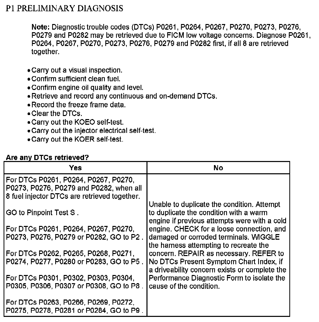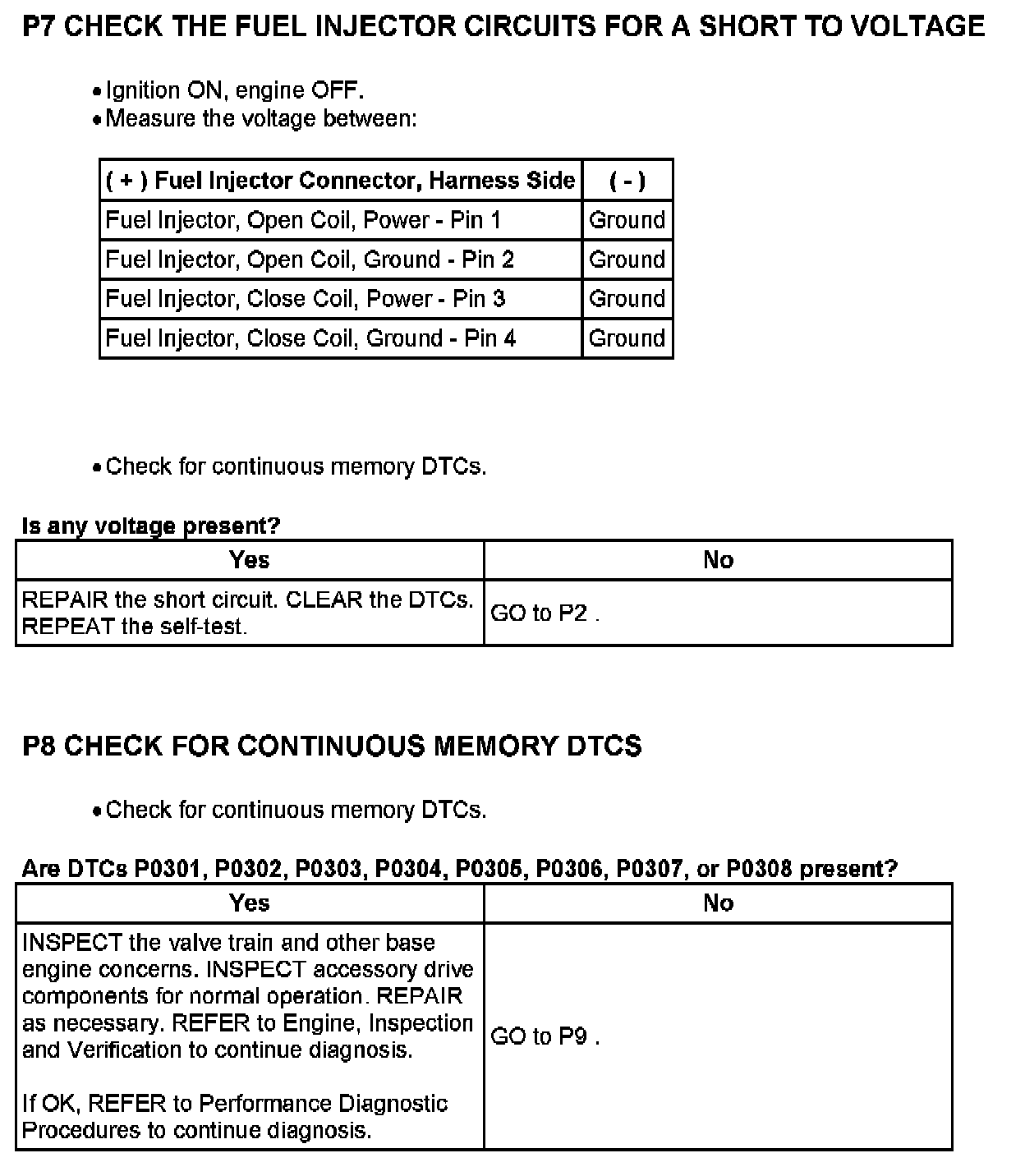 PINPOINT TEST P: MISFIRE/INJECTOR DRIVER CIRCUIT OPERATION