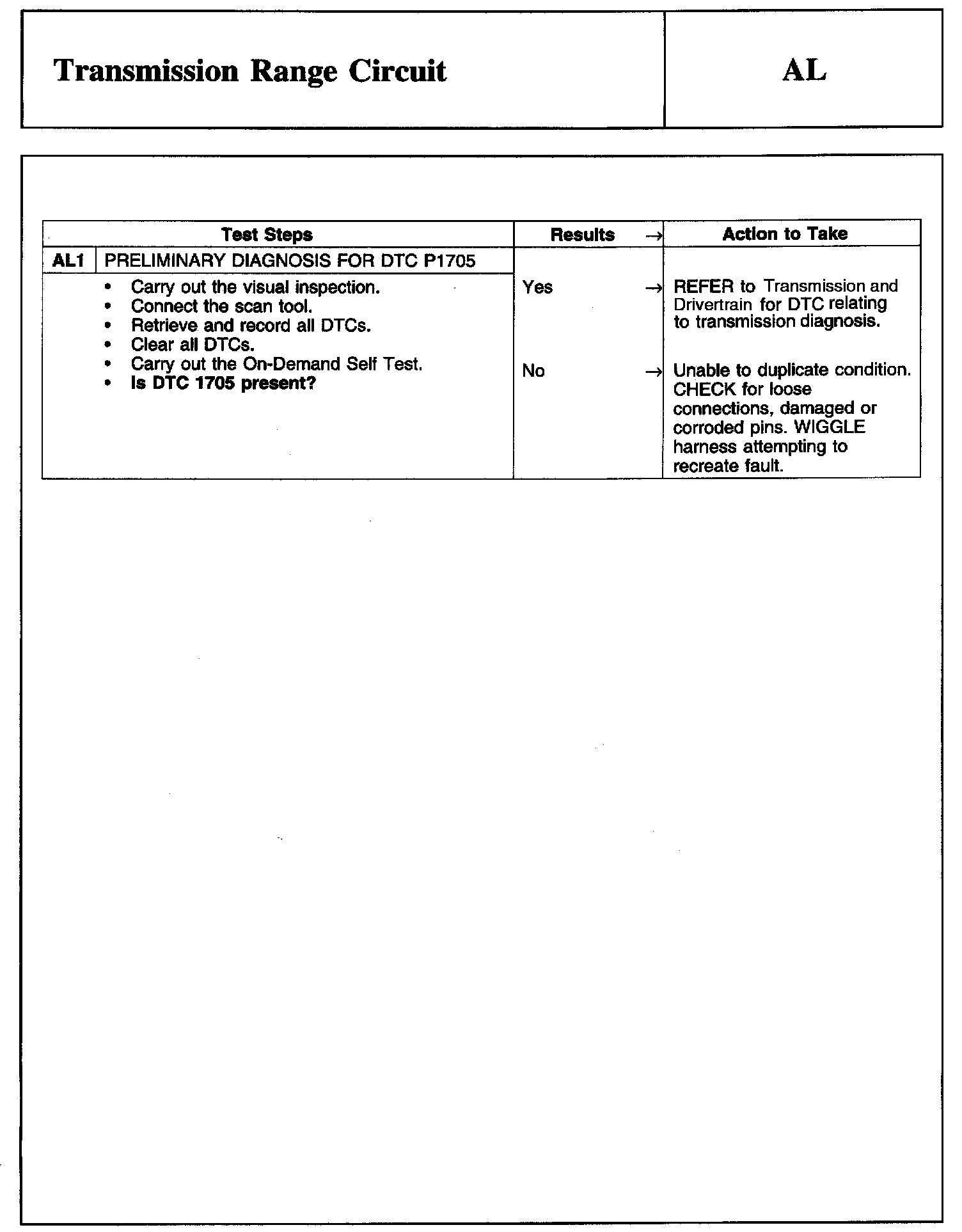 PINPOINT TEST AL: TRANSMISSION RANGE CIRCUIT