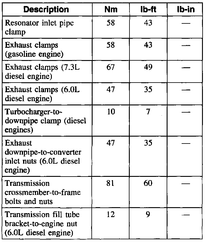 Torque Specifications