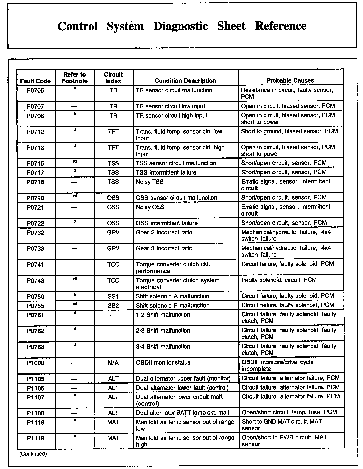 Control System Diagnostic Sheet Reference, Part 7: