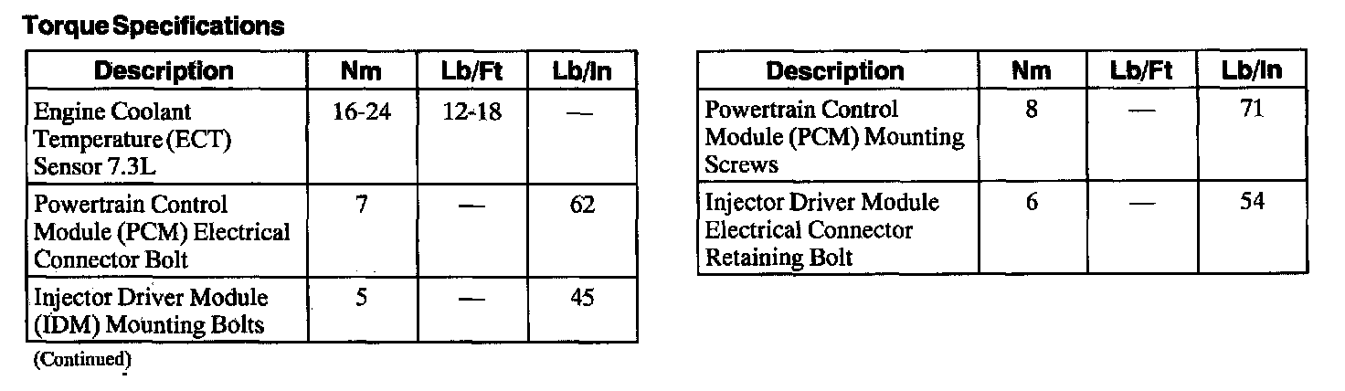 Torque Specifications: