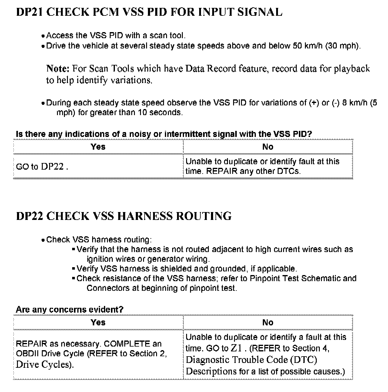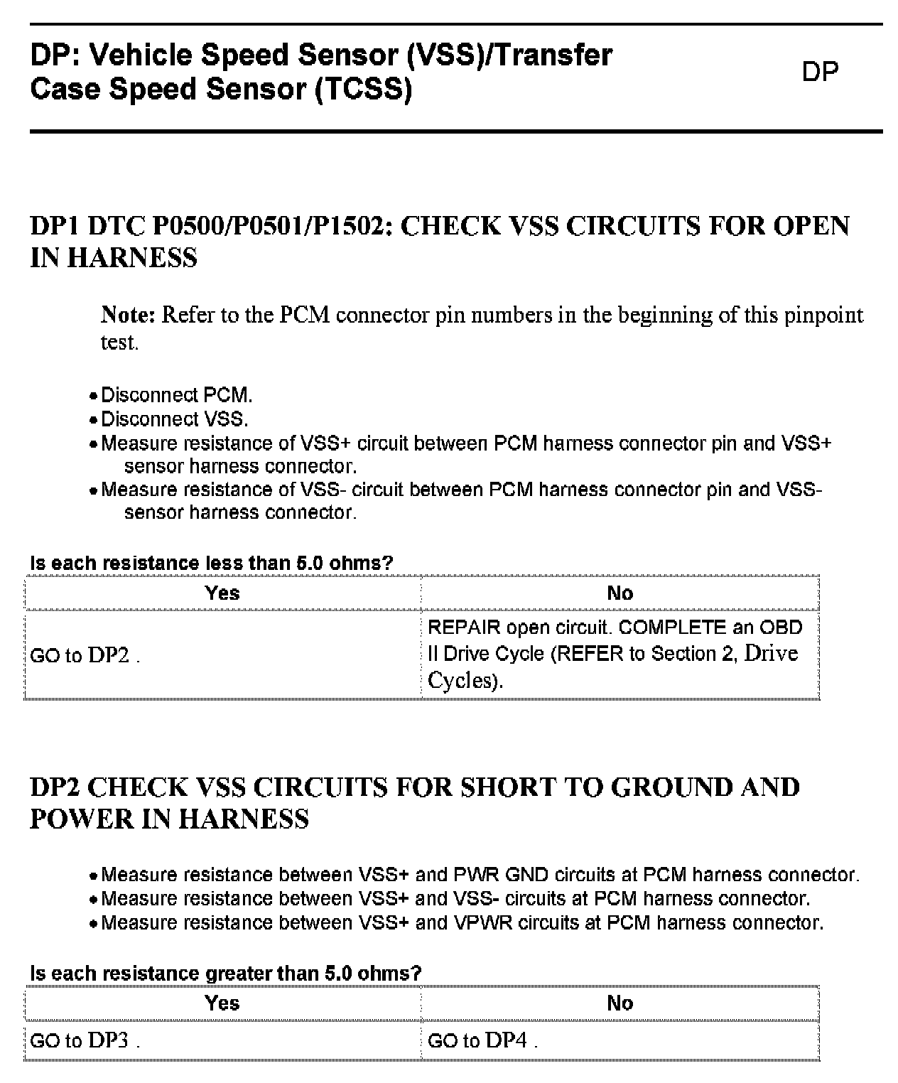 Tests DP: Vehicle Speed Sensor/Transfer Case Speed Sensor