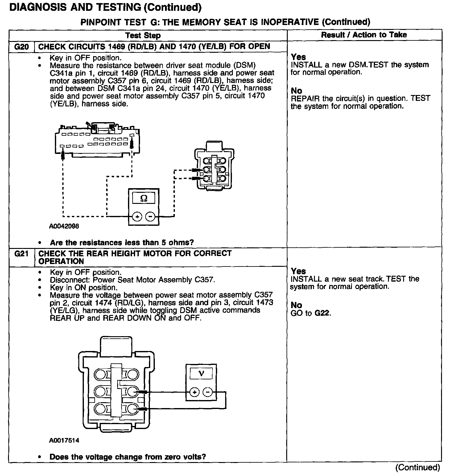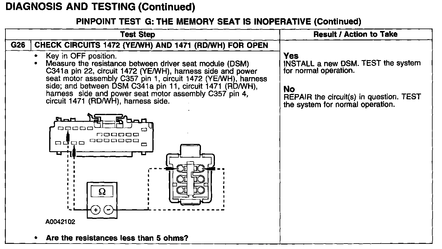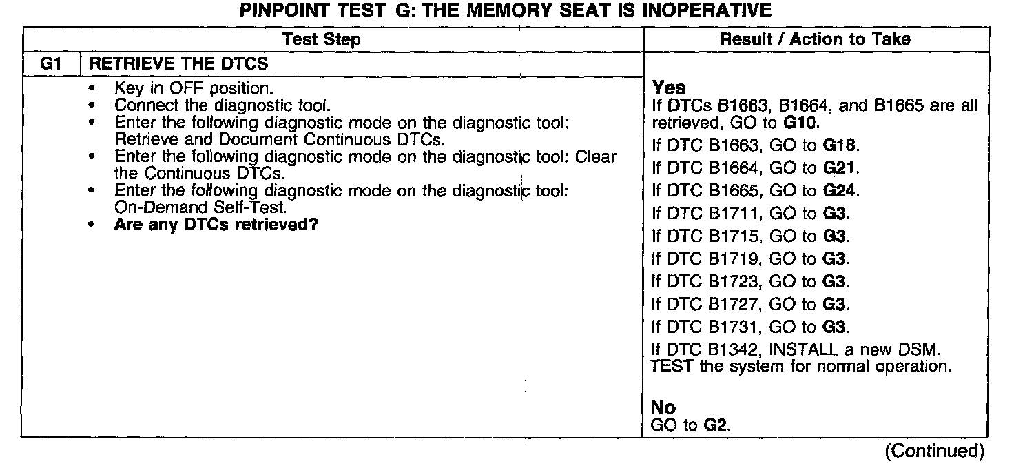PINPOINT TEST G: THE MEMORY SEAT IS INOPERATIVE