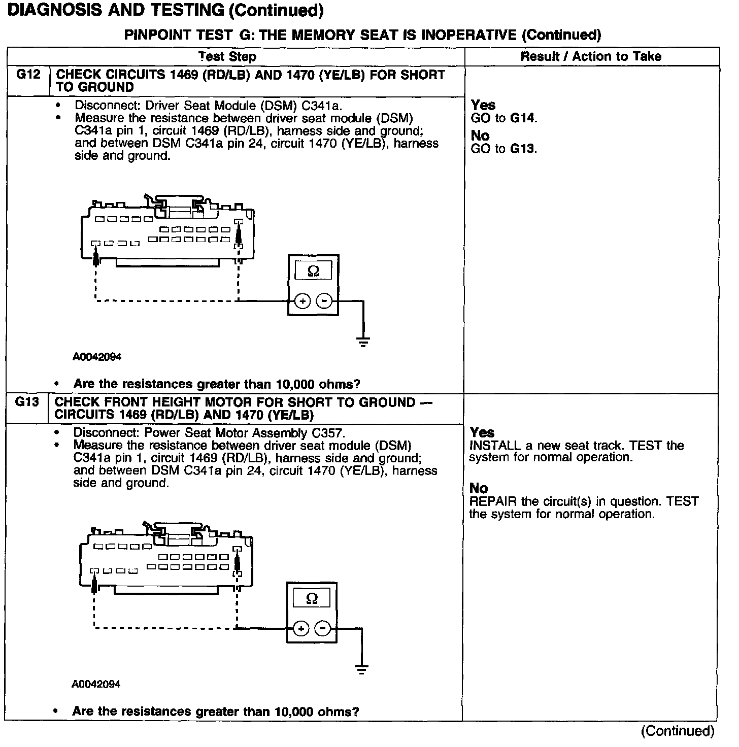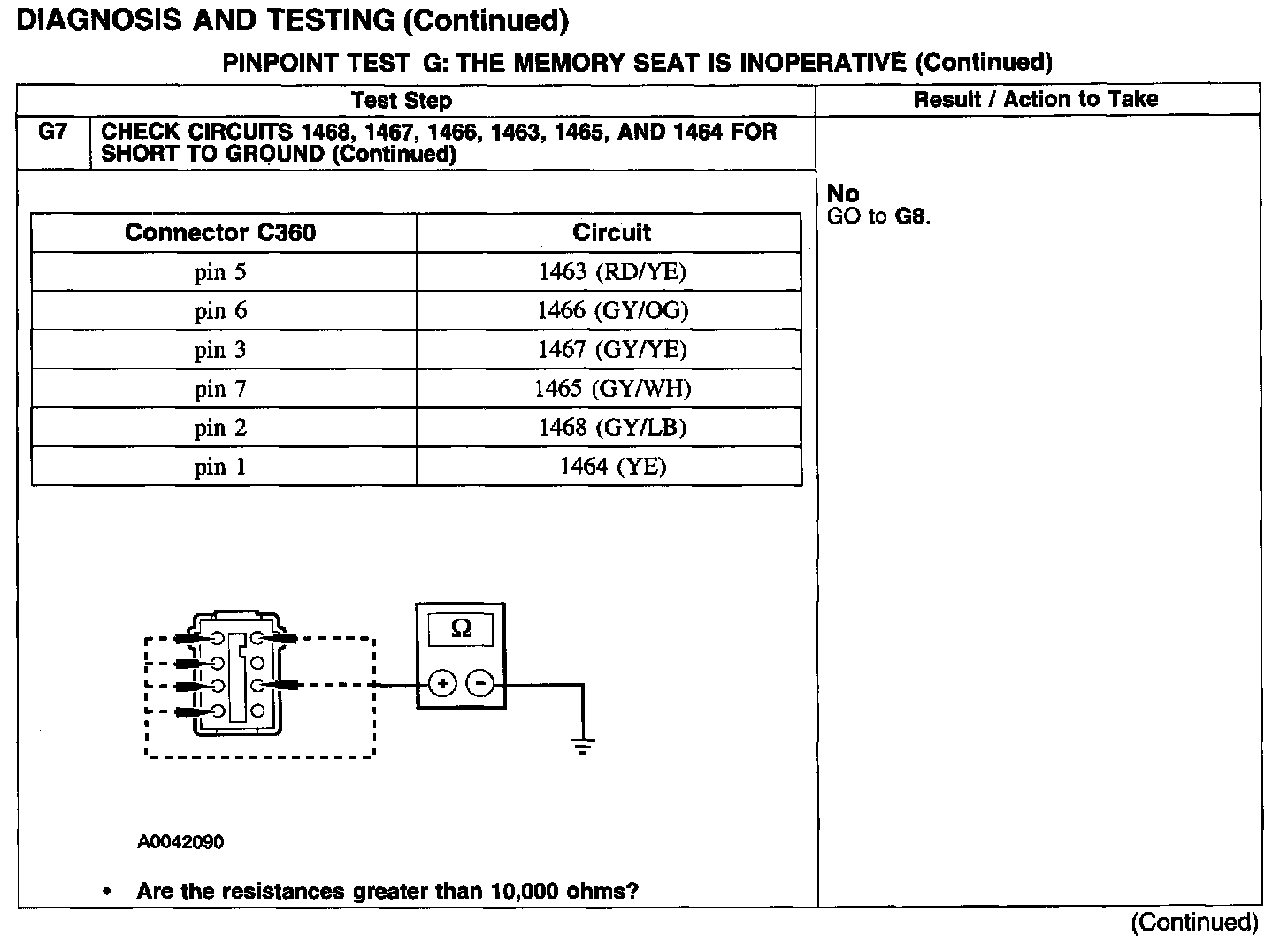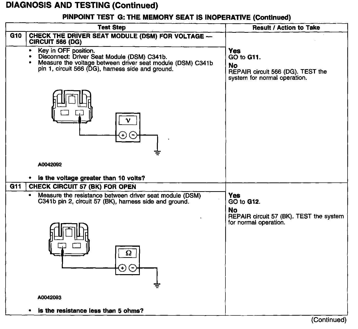 PINPOINT TEST G: THE MEMORY SEAT IS INOPERATIVE