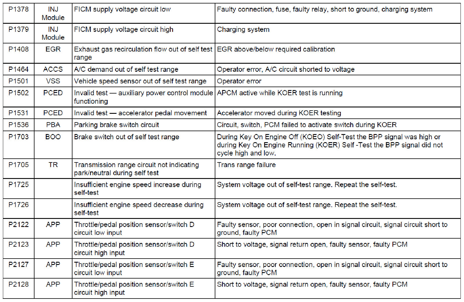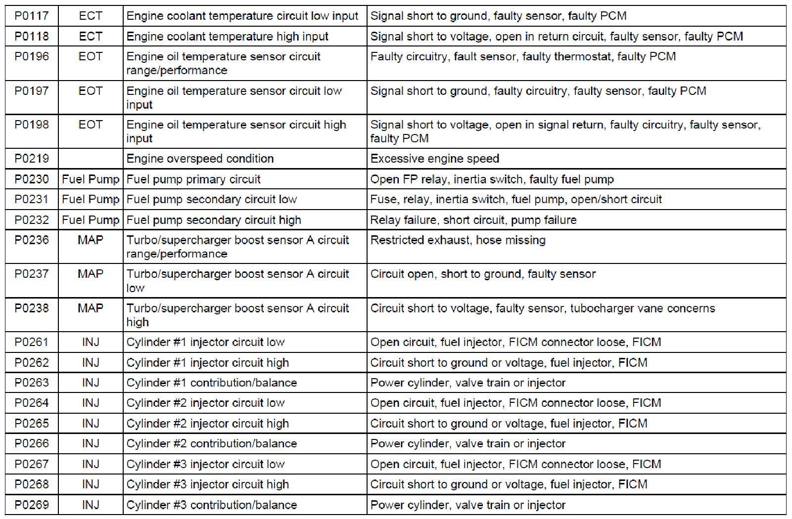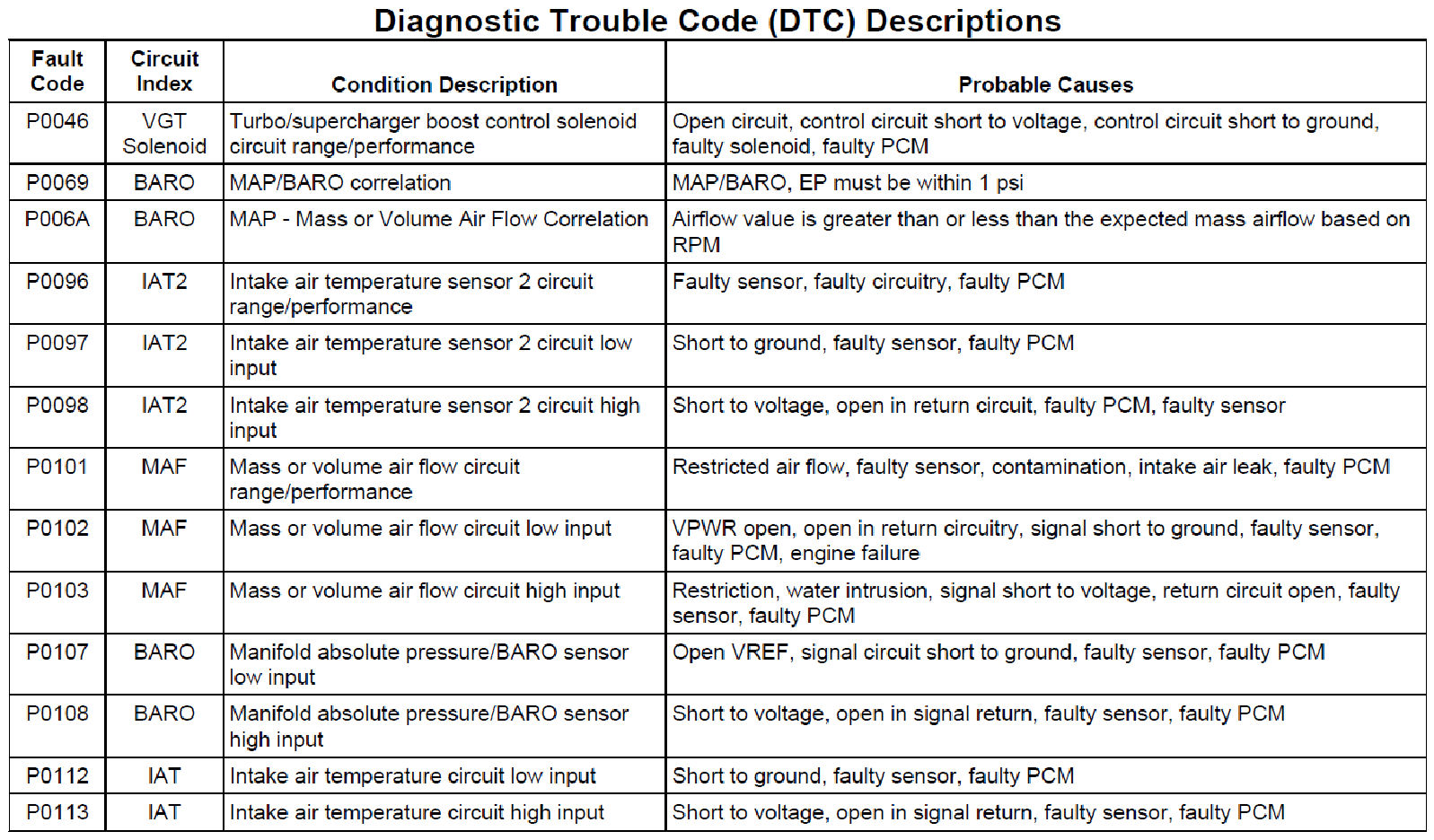 Diagnostic Trouble Code (DTC) Descriptions