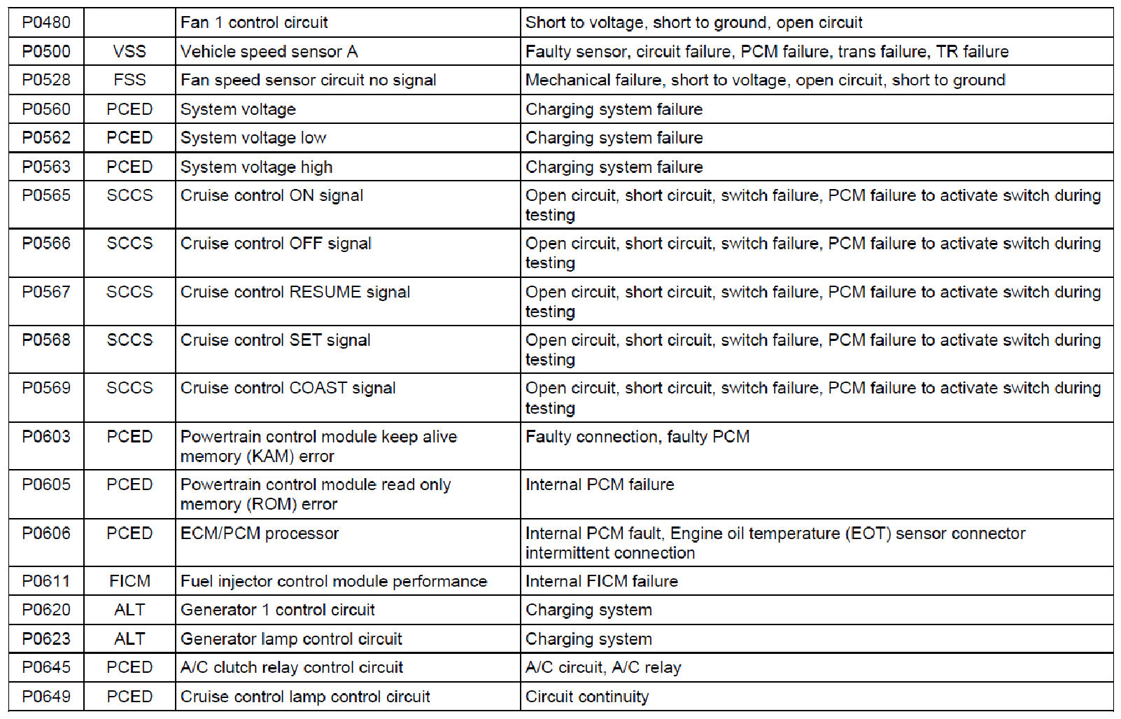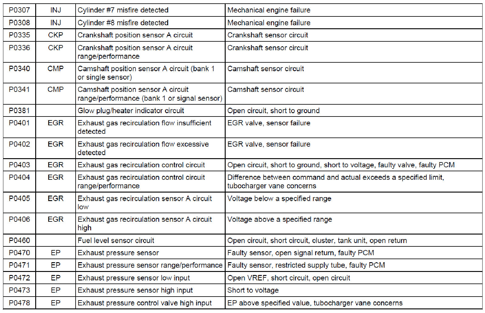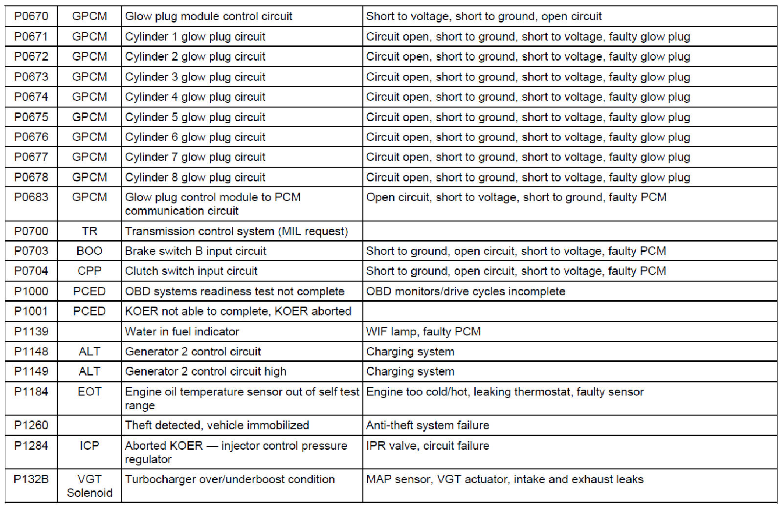 Diagnostic Trouble Code (DTC) Descriptions