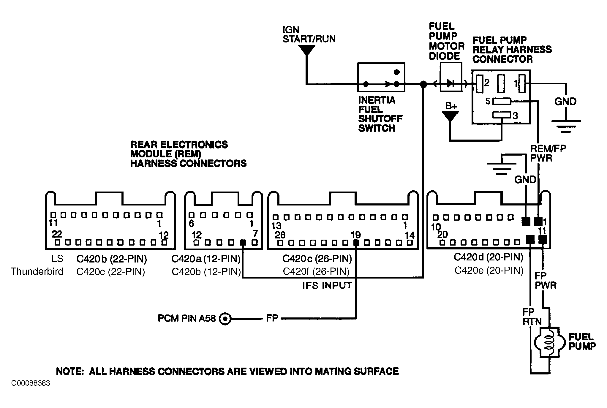 • On LS & Thunderbird, Circuits Associated With Fuel Pump Relay