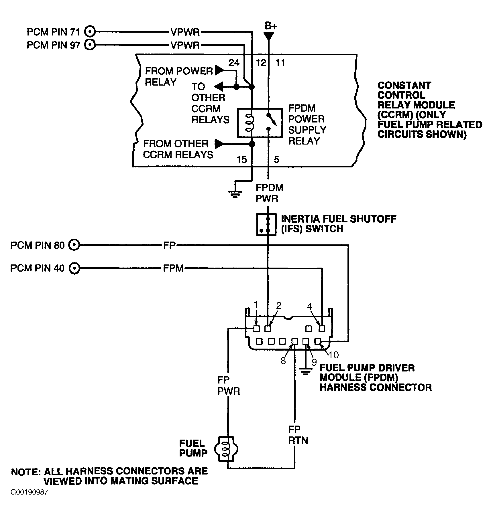 • On Focus, Sable and Taurus wiggle and bend B+ and GND circuits to FPDM power supply relay.