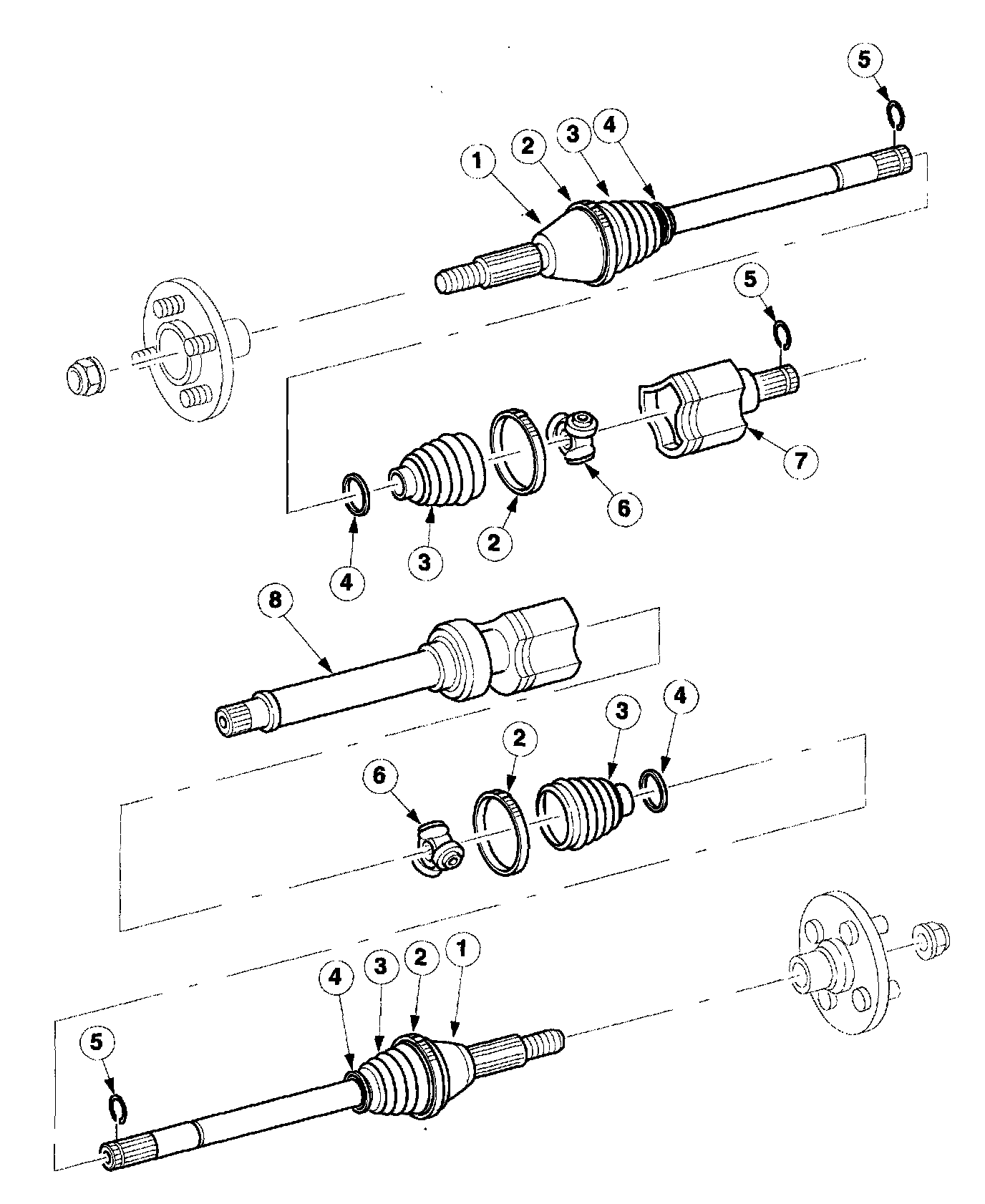 Exploded view of the front drive halfshaft