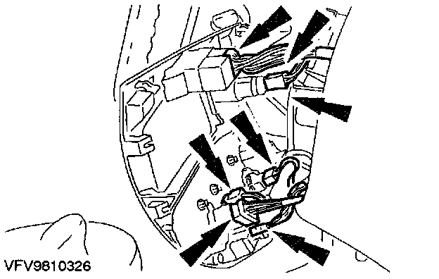 - Pull off seven electrical connectors (six shown).