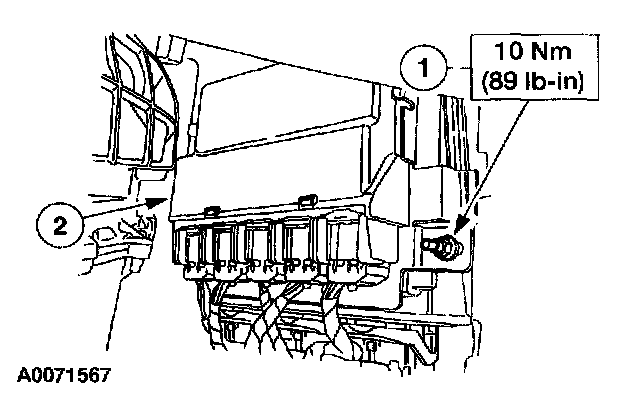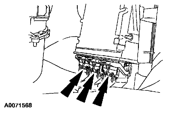 7. Disconnect the powertrain control (PCM) module electrical connectors and remove the PCM.