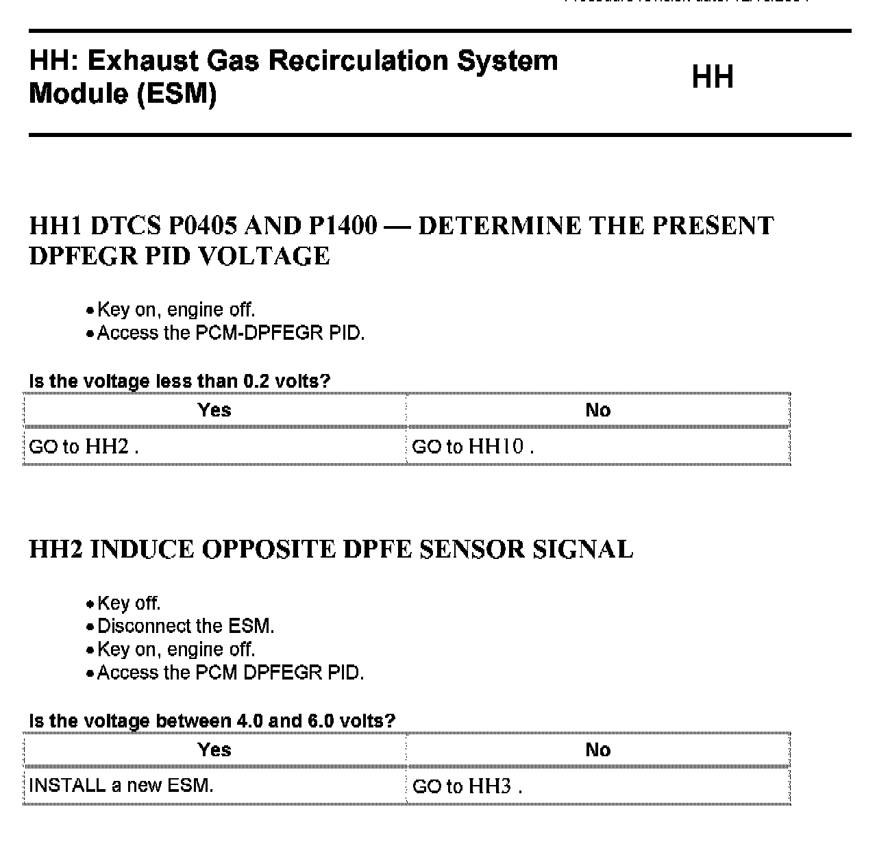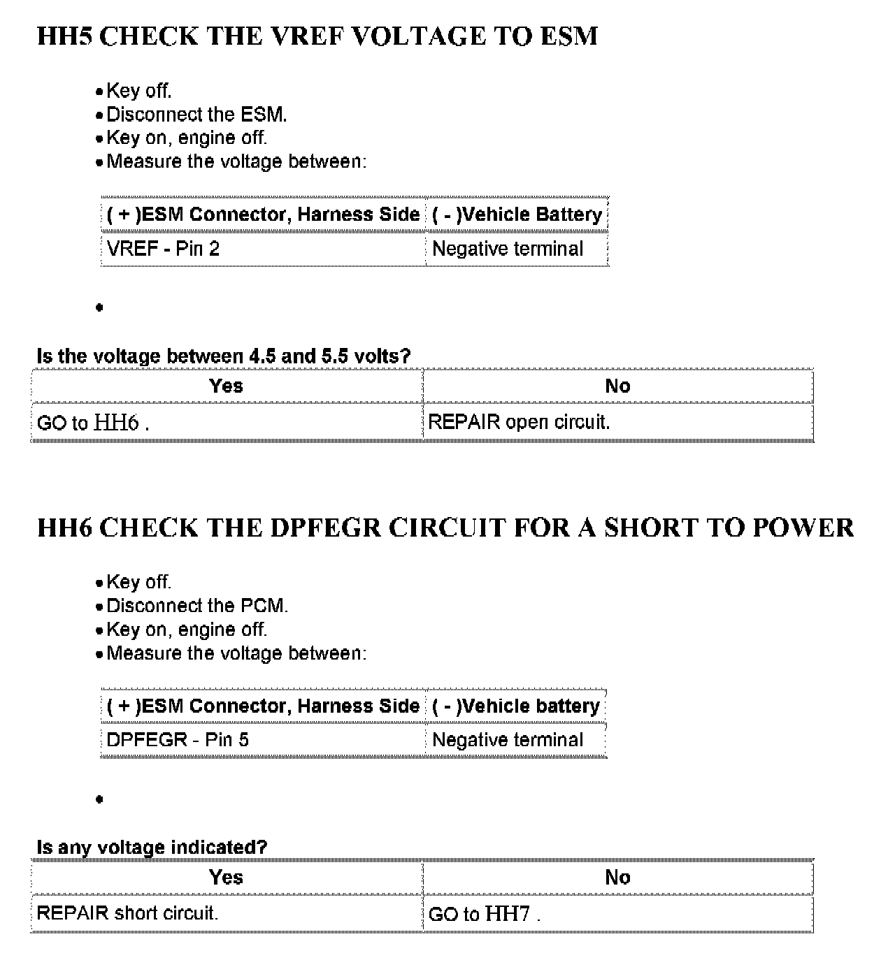 Home >> Ford >> 2003 >> Focus L4-2.3L VIN Z >> Repair and Diagnosis >> Powertrain Management >> Computers and Control Systems >> Testing and Inspection >> Pinpoint Tests >> Tests HH: Exhaust Gas Recirculation System Module (ESM)