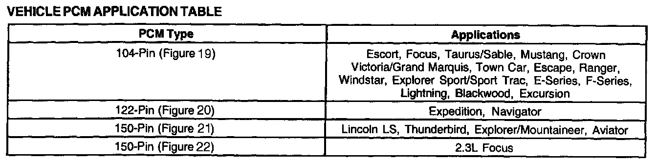 Powertrain Control ModuleVehicle PCM Application Table: