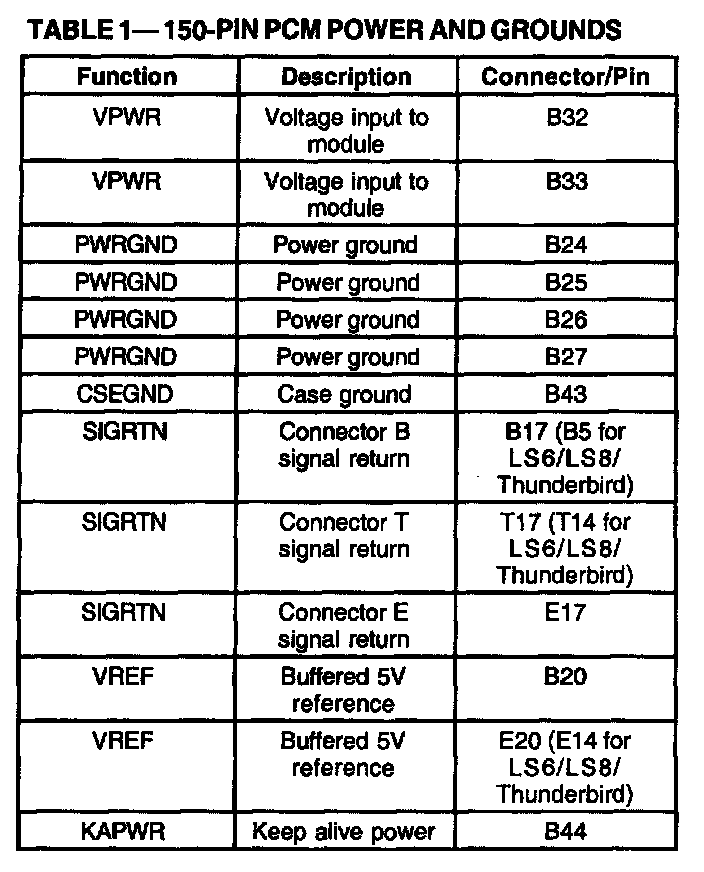 150-Pin PCM Power And Grounds, Part 1: