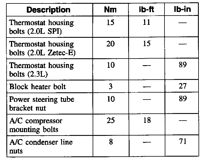 Torque Specifications