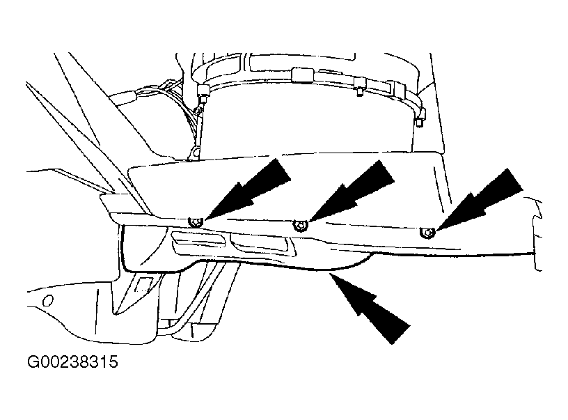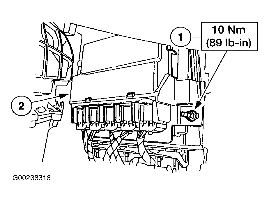 Disconnect negative battery cable. Remove right side instrument panel trim and kick panel. See Fig 1. Remove glovebox and footwell trim panel. See Fig 2 and Fig 3 . Remove Central Security Module (CSM) retaining nuts (1). See Fig 4. Remove CSM and bracket (2) and position aside. Disconnect Powertrain Control Module (PCM) electrical connectors and remove PCM. To install, reverse removal procedure.