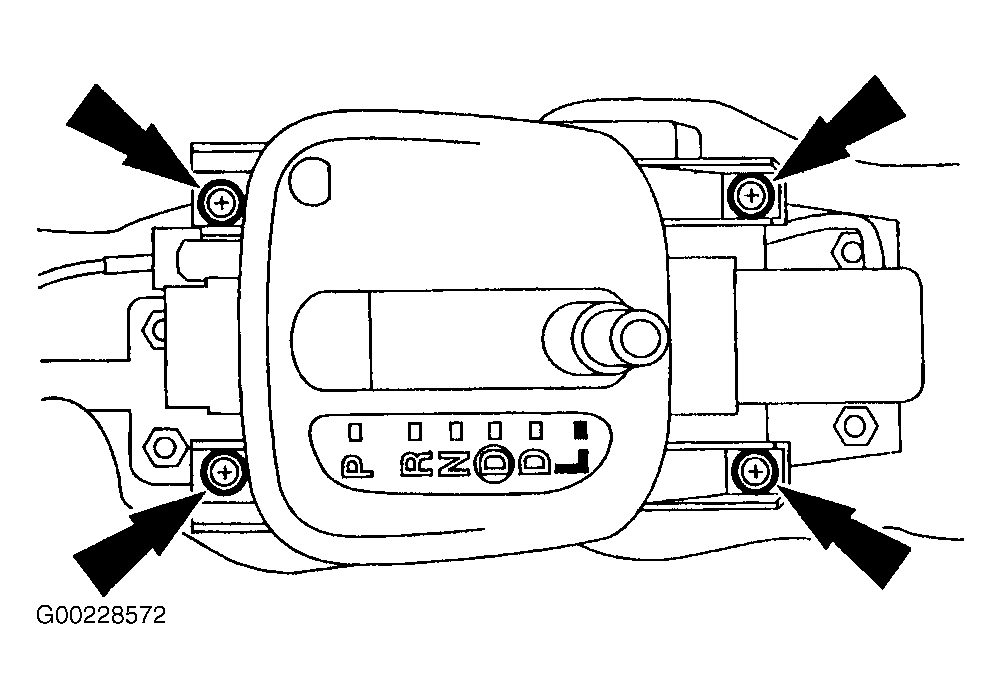 Disconnect negative battery cable. Remove parking brake and shifter consoles. Place gearshift lever in Low and remove shift indicator plate screws and turn shift indicator plate one quarter turn counterclockwise. See Fig 1. Loosen PCM connector retaining bolt, located in center of instrument panel, below center console. Slide PCM out. See Fig 2. To install, reverse removal procedure. Ensure anti-rattle clips are correctly aligned when installing PCM.