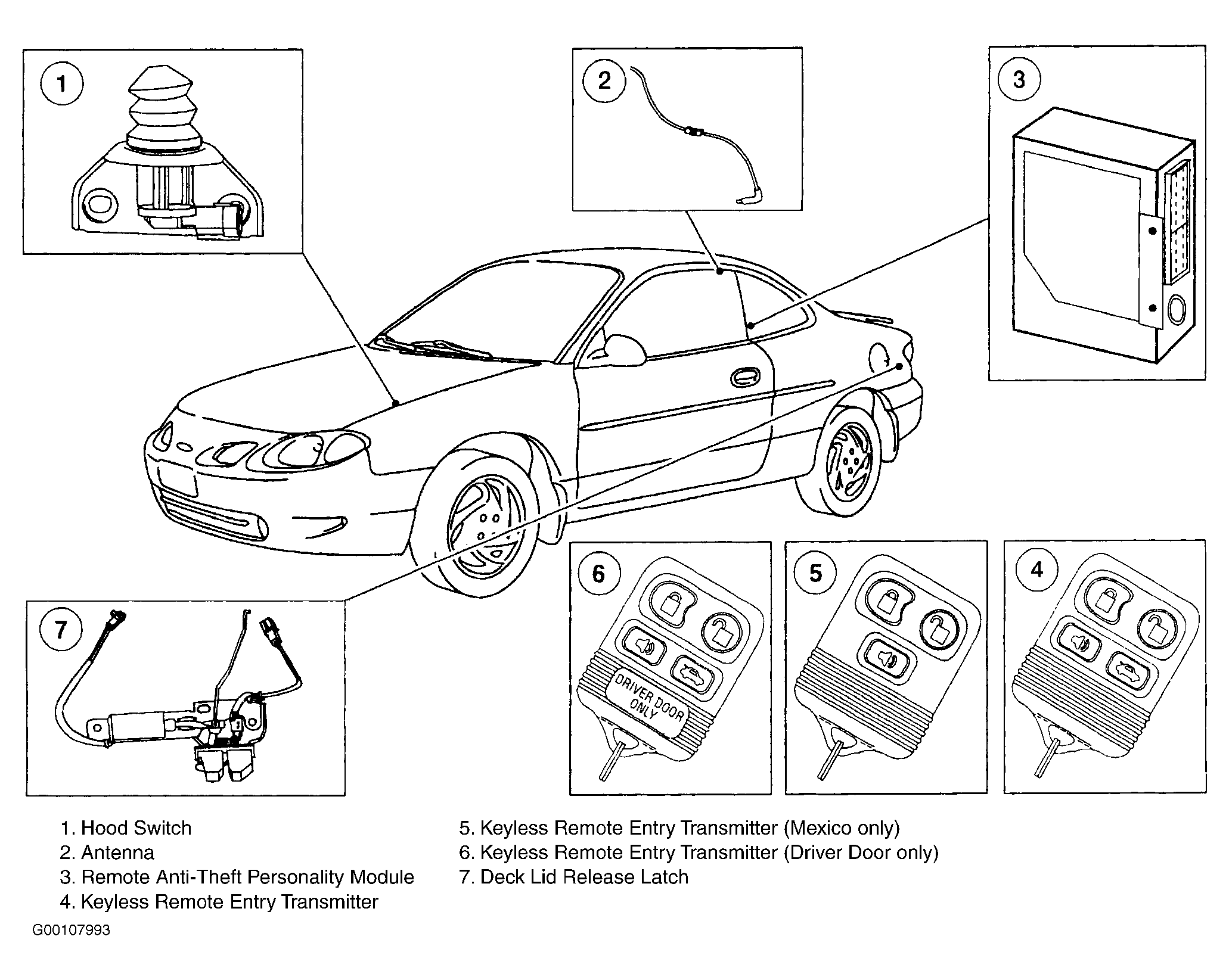 Remote Anti-Theft Personality (RAP) module is located in luggage compartment, behind right trim panel. See Figure