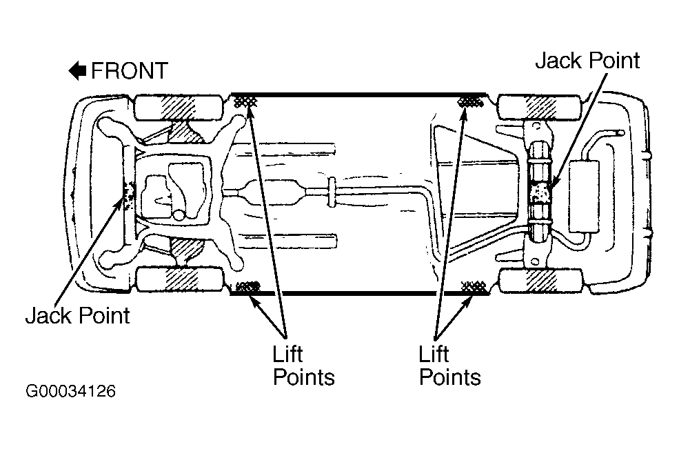Follow hoist manufacturer instructions. DO NOT let hoist or adapters contact suspension, exhaust or steering components.