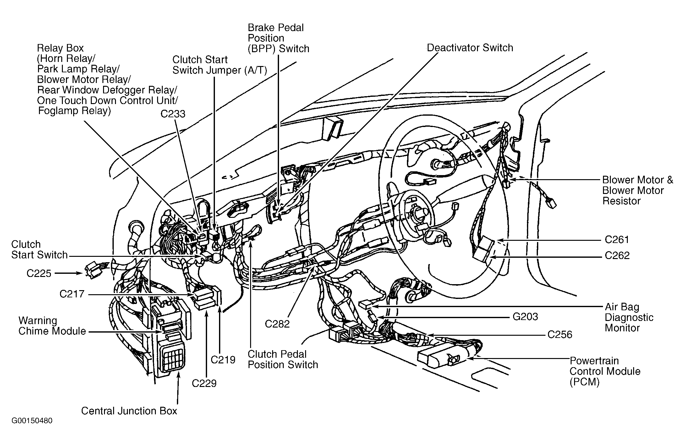 | Powertrain Control Module (PCM) | Below center of dash. See Figure . |