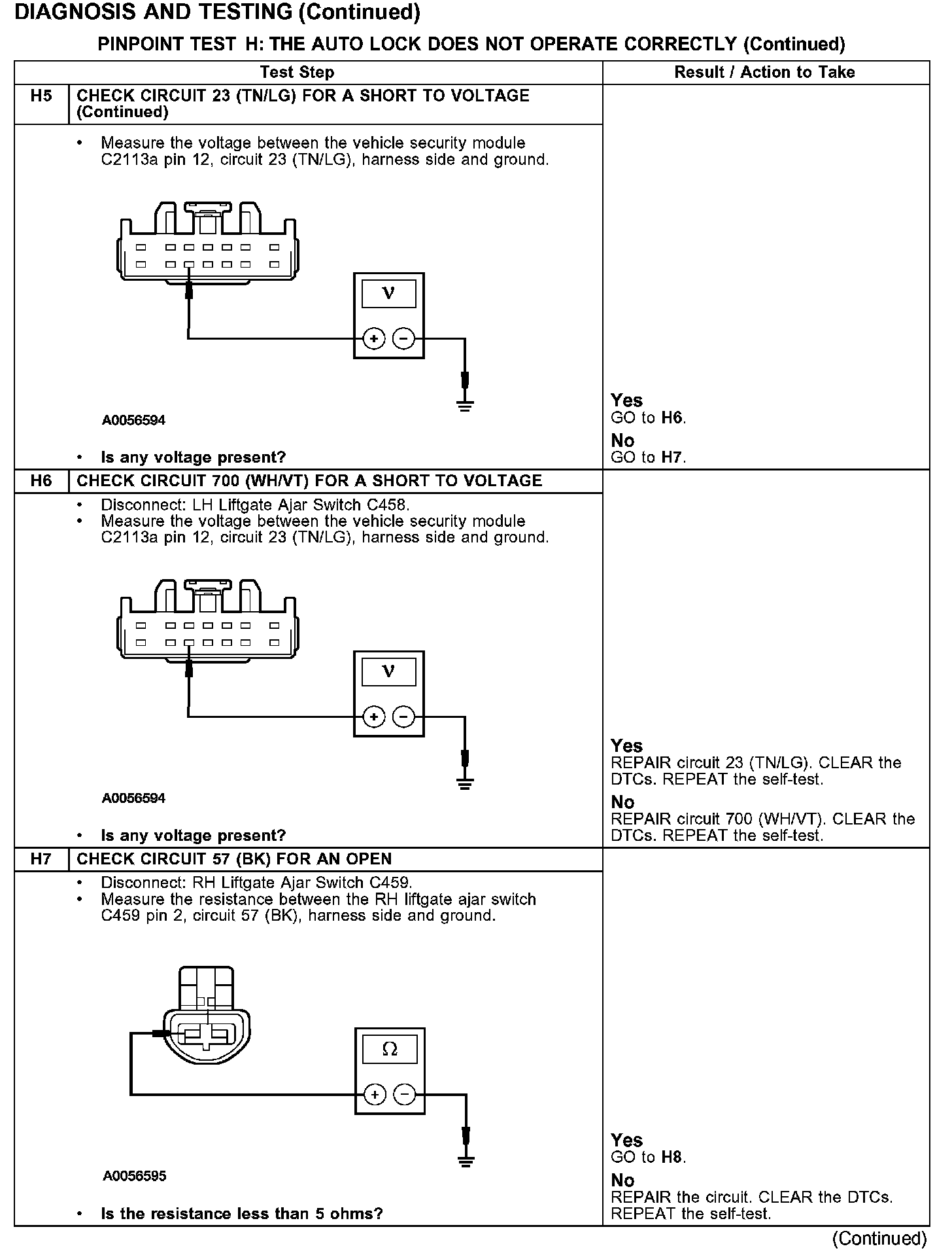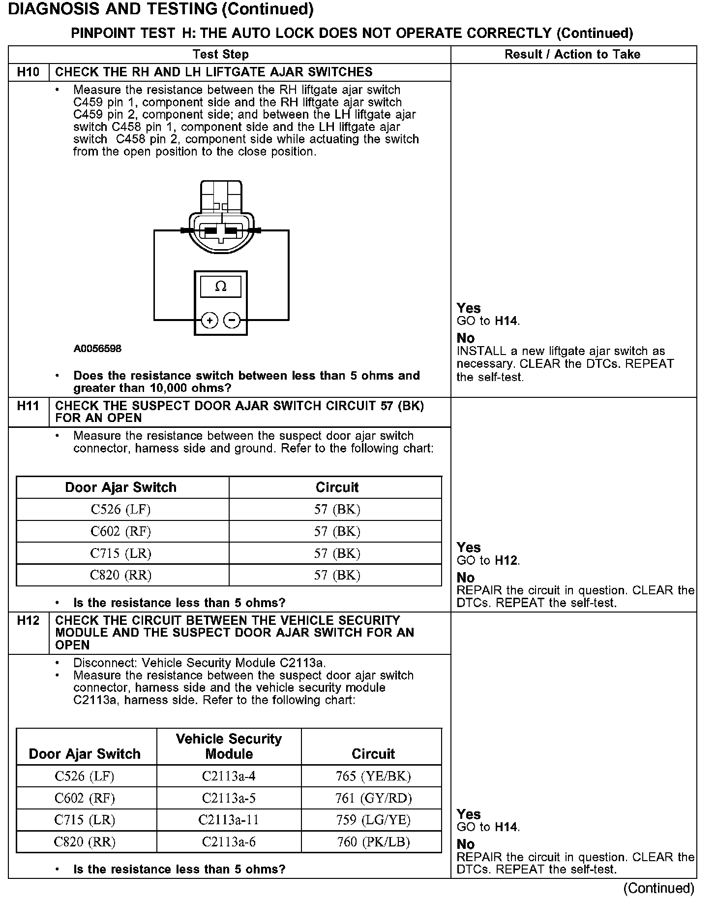 PINPOINT TEST H: THE AUTO LOCK DOES NOT OPERATE CORRECTLY