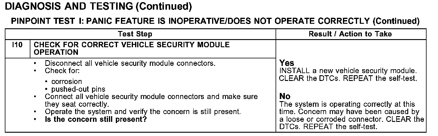 PINPOINT TEST I: PANIC FEATURE IS INOPERATIVE/DOES NOT OPERATE CORRECTLY