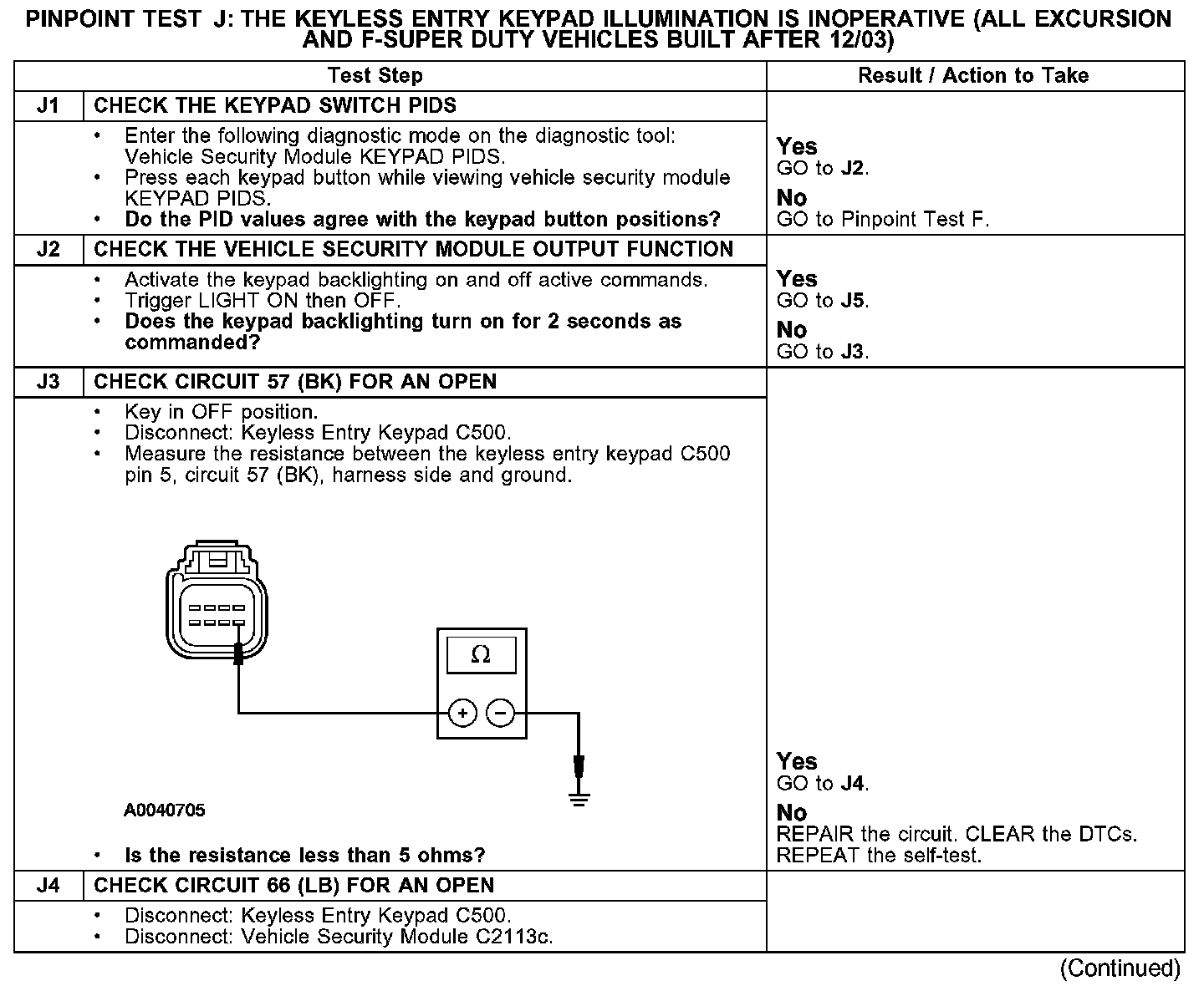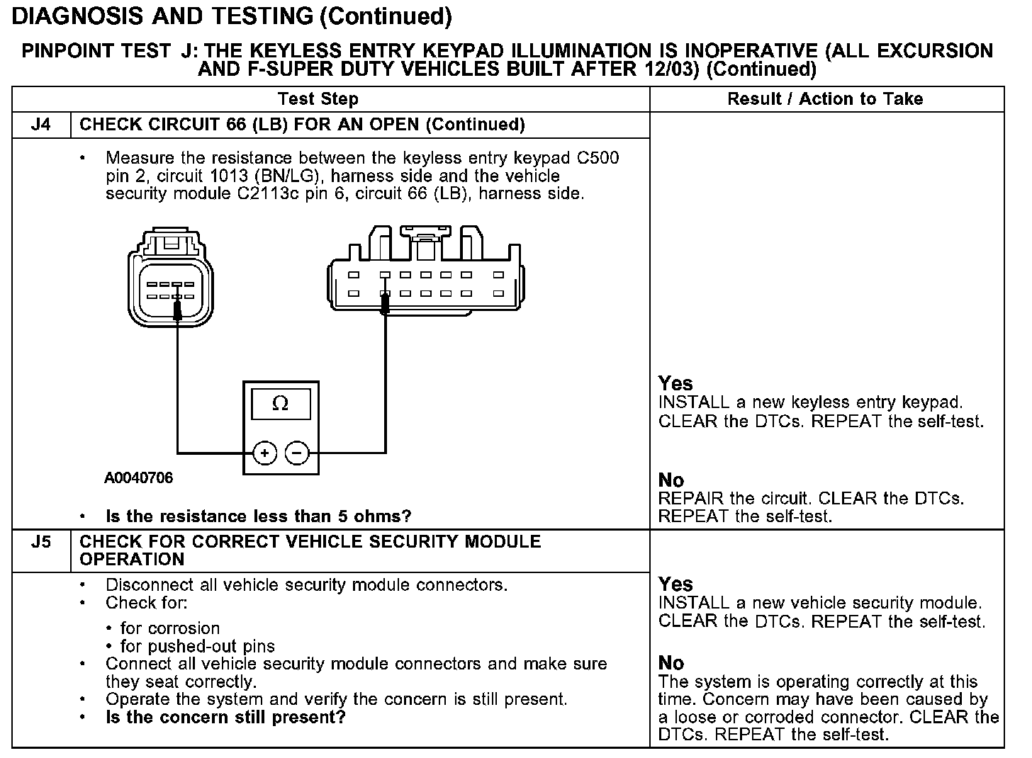 KEYPAD ILLUMINATION IS INOPERATIVE (ALL EXCURSION AND F-SUPER DUTY VEHICLES BUILT AFTER 12/03)