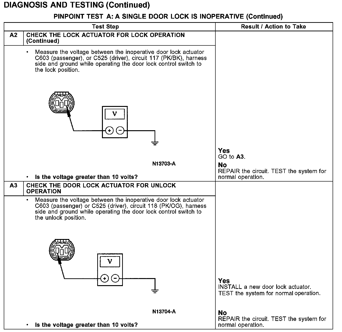 PINPOINT TEST A: A SINGLE DOOR LOCK IS INOPERATIVE